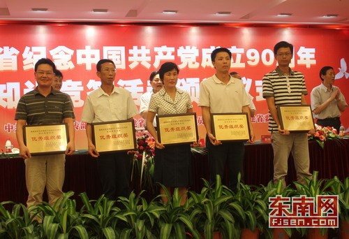6月28日下午,由省委宣传部、省委教育工委、省委党史研究室联合举办的纪念中国共产党成立90周年知识竞答活动颁奖仪式在福州举行。主办方为获得组织奖、优秀组织奖的单位颁奖,并在公证员的监督下,按参与人数的比例分别从报刊和网络竞答者中抽出获奖个人。