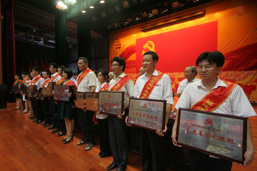 校党委罗萤书记在会上讲话。他说,中国共产党90年的历史,是为中华民族的独立、解放、繁荣,为中国人民的自由、民主、幸福而不懈奋斗的90年,也是推动人民教育事业实现历史性进步的90年。90年的发展事实雄辩地证明:中国共产党是一个伟大、光荣、正确的党,是中国特色社会主义事业的坚强领导核心。坚持中国共产党的领导是历史的选择、人民的选择。他指出,近年来,学校始终坚持党对教育事业的领导,全面贯彻党的教育方针,乘着改革开放、科教兴国和海西建设的东风,围绕中心抓党建、促发展,学校的综合实力和核心竞争力大幅提升,为建设高水平大学奠定了坚实的基础。在学校发展进程中,各级领导班子的领导核心作用、基层党组织的战斗堡垒作用、全体党员的先锋模范作用充分发挥,为学校的改革发展注入了强大的动力。