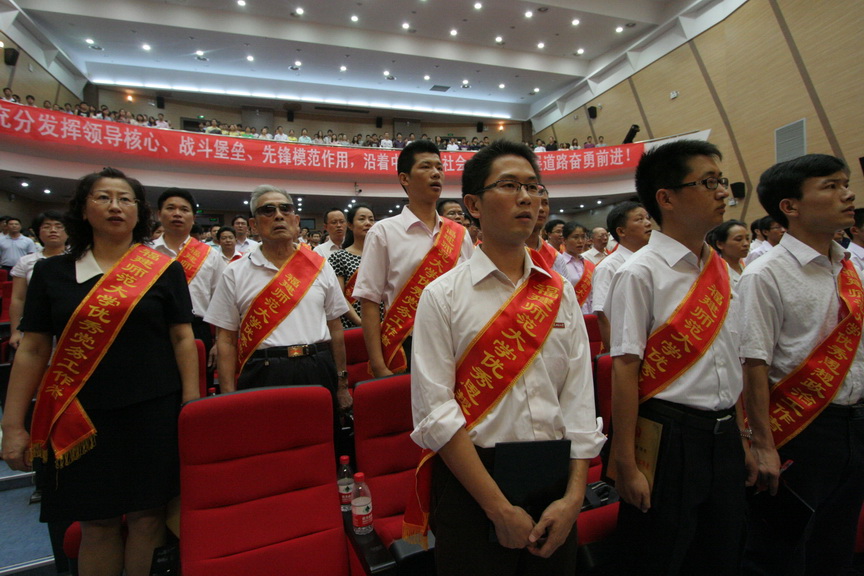 大会于6月30日下午在旗山校区大会堂隆重举行。校领导罗萤、许歌平、汪文顶、许明、凌启淡,原校领导张次愚、陈锋,机关各部处、室、馆、中心、集团、公司、医院负责人,各分党委(党总支、直属党支部)负责人,离休干部党总支、退休教工党支部书记,校关工委负责人,各民主党派、统战团体和无党派人士联谊会负责人,省、校先进基层党组织和优秀共产党员、优秀党务工作者、优秀思想政治工作者表彰对象,校纪念建党90周年理论征文获奖论文作者,师生党员代表近1000人参加了大会。大会由校纪委许歌平书记主持。