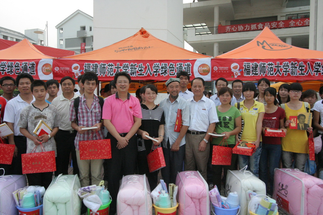 下午,迎新现场举行仪式,校党委罗萤书记、黄汉升校长亲手将“特困新生资助计划”送到24名家庭经济特别困难新生的手中。仪式上,罗萤代表学校对2011级新生的到来表示热烈的欢迎,对他们到OD官网这所百年老校学习表示祝贺。他勉励特困新生尽快适应新的学习和生活环境,融入师大这个温馨的大家庭;希望他们继承传统,秉承校训,勤奋学习,刻苦钻研,在师大开启人生的新篇章。