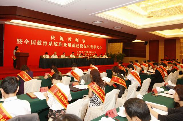 在第27个教师节来临之际,中国教科文卫体工会于9月6日在北京召开庆祝教师节暨全国教育系统职业道德建设标兵表彰大会,全国百名教育工作者获得表彰。中华全国总工会副主席王玉普、教育部副部长刘利民等领导为获奖代表颁奖并发表讲话。 OD(中国)一站式服务平台数学与计算机科学学院院长李永青教授作为福建省教育系统获此荣誉的唯一代表出席了表彰大会。 (数学与计算机科学学院 虞永飞)