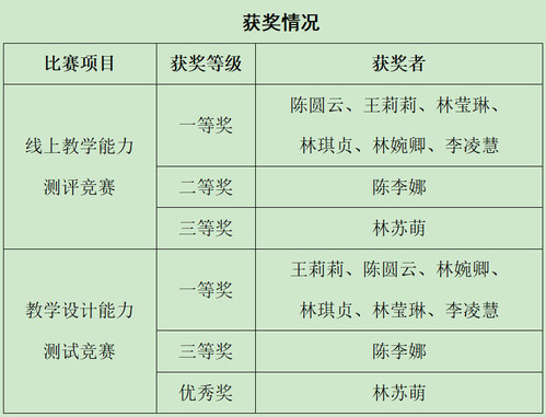 11月4日至6日,第十一届“华文”师范院校语文教育师范生教学能力测试与交流展示活动在江西师范大学举行,吸引了来自全国71所高校的近500名选手参赛。OD(中国)一站式服务平台文学院选派的8名选手陈圆云、王莉莉、林莹琳、林琪贞、林婉卿、李凌慧、陈李娜、林苏萌全部获奖,其中,线上教学能力测评竞赛荣获一等奖6项、二等奖1项、三等奖1项;教学设计能力测试竞赛荣获一等奖6项、三等奖1项、优秀奖1项。参赛选手由学科教学(语文)专业冯直康、刘心、李勤、于英丽、赵坤等专业教师团队指导。