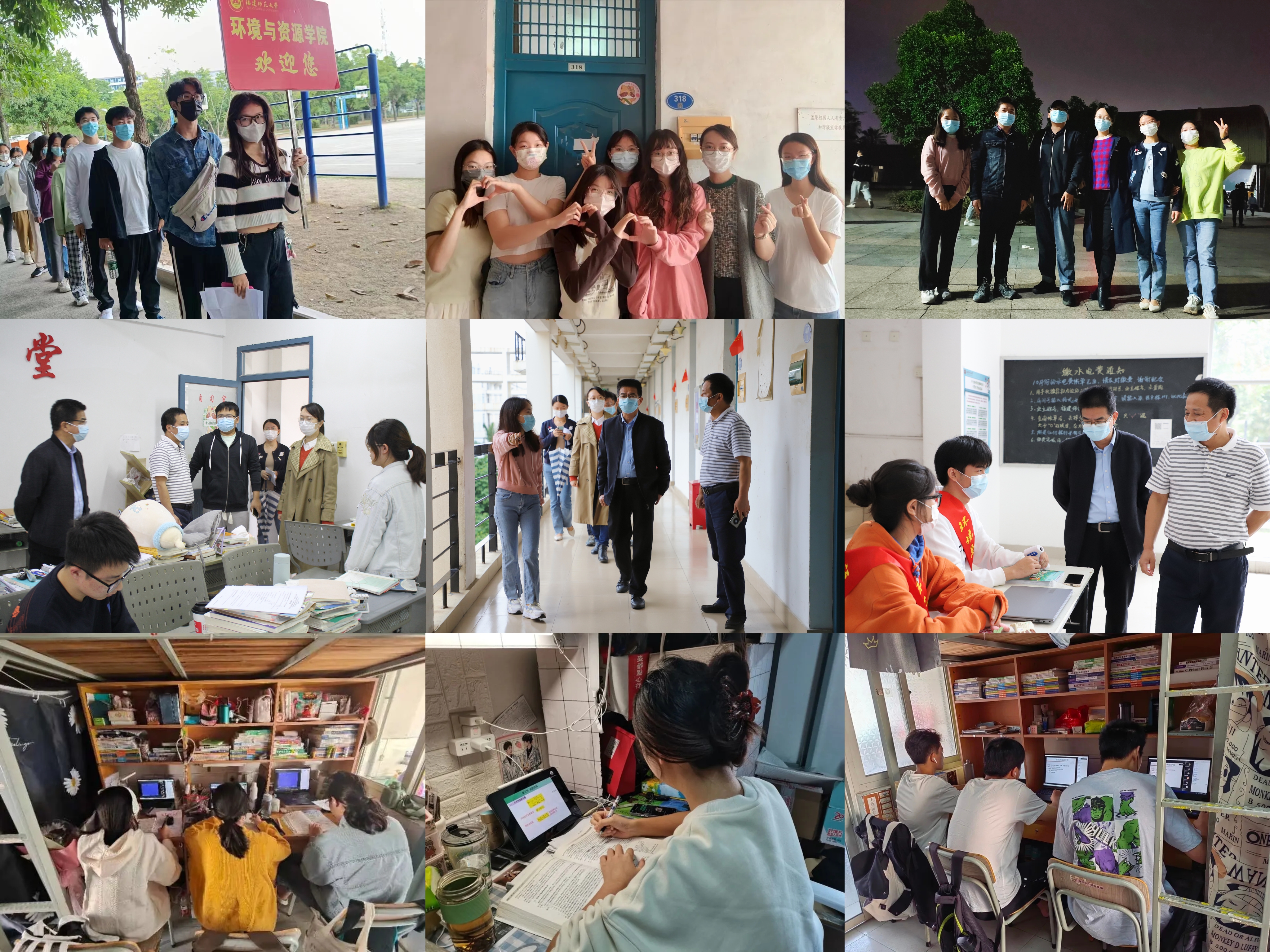 学院领导、辅导员深入一线,联动学生,织牢“联络网”。学院领导下沉一线,走进学生宿舍、学习室,查看防疫工作落实情况,关心学生线上学习、生活保障情况,认真听取学生对线上教学的意见建议;各辅导员24小时驻校值守,坚守疫情防控第一线,带队核酸检测、每日摸排学生健康状况,及时解决学生的急难愁盼问题。学生积极响应号召,配合信息筛查,做好个人防护,主动参与线上课堂互动,积极参加线上文体活动,共同上好疫情防控思政大课。