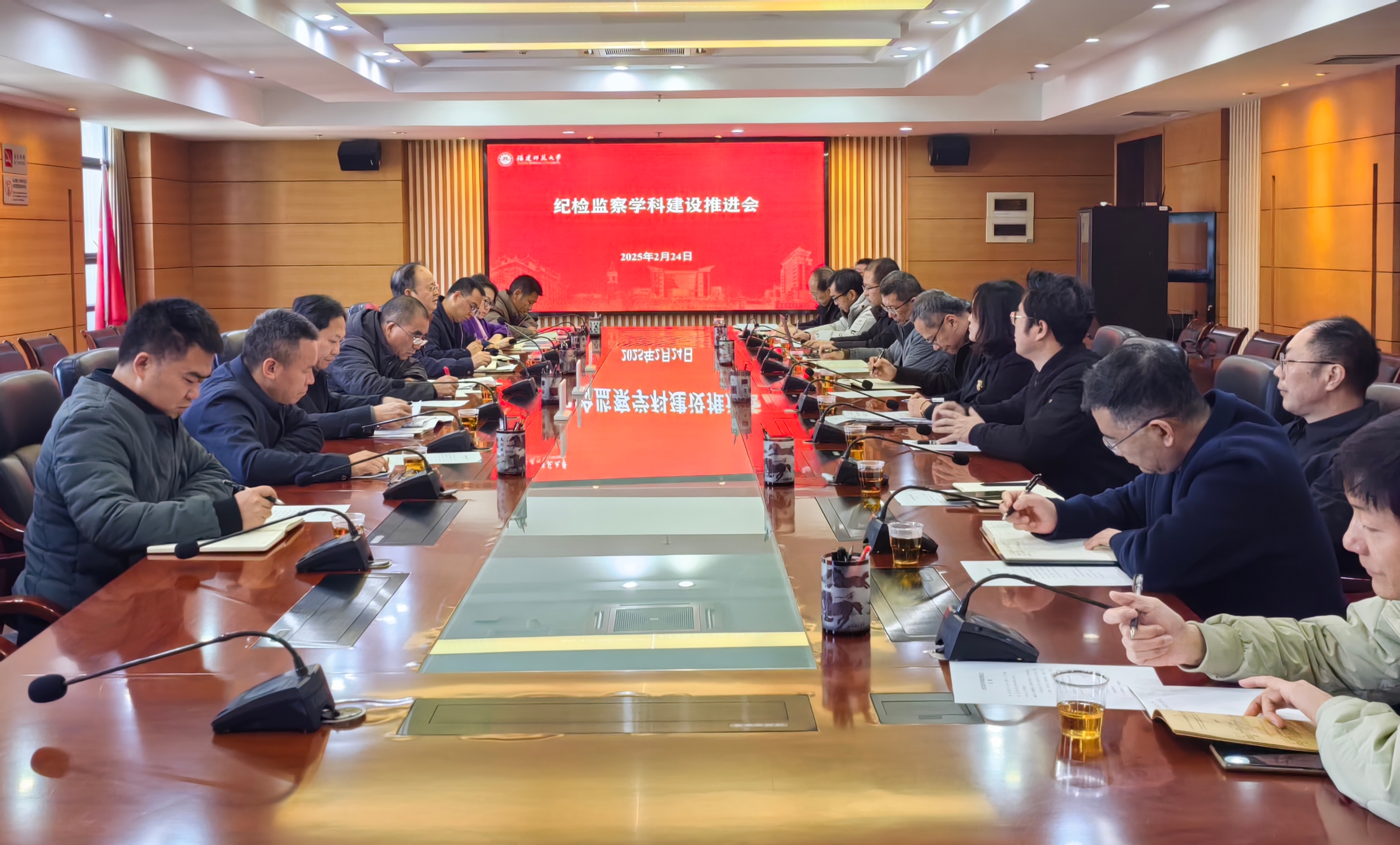 郑家建在讲话中充分肯定了纪检监察学科建设取得的成绩。他强调,要提高政治站位,从落实中央纪委国家监委、省纪委监委部署要求的政治高度、深入推进学校“双一流”建设的发展大局出发,坚定信心、保持定力,齐心协力推进纪检监察学科高质量发展;要坚持对标对表,突出问题导向,紧扣核心指标、关键要素找准差距、明确方向、突显特色,以超常规的举措攻坚破阻,产出更丰硕、更高质量的成果,确保2026年申博“上报”就是“上岸”;要精准发力施策,加快补齐短板,制定出台科研激励政策,激发交叉学科教师参与纪检监察学研究的积极性和创造性,发挥纪检监察学院的办学主体作用和职能部门的服务指导作用,全力做好一级学科博士点申报前期各项工作,紧盯学科建设中的重点难点堵点,确保纪检监察学科建设取得实效。