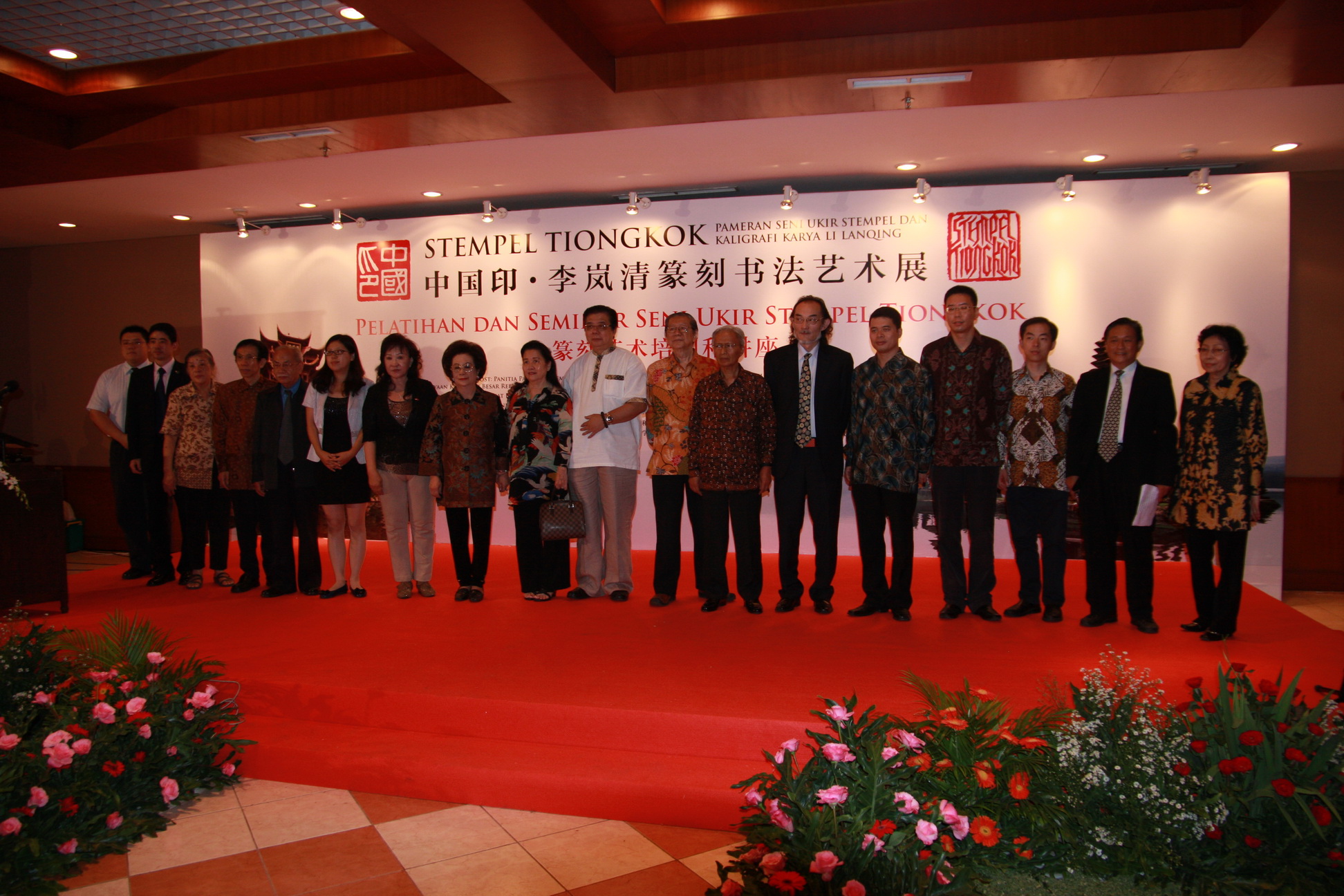 近日,由印尼阿拉扎大学孔子学院参与承办的中国印•李岚清篆刻书法艺术作品展之篆刻艺术培训与讲座在印尼国家博物馆开幕。中国国家汉办和中国驻印尼使馆代表、雅加达华文教育协调机构负责人、阿拉扎大学校长代表等嘉宾,以及来自阿拉扎大学、印尼大学、建国大学、慈育大学、基督教大学、达尔玛柏莎达大学、新雅学院、国民大学的师生和印尼书法家协会、印尼部分国立中学师生等各界人士共400多人参加了开幕式。