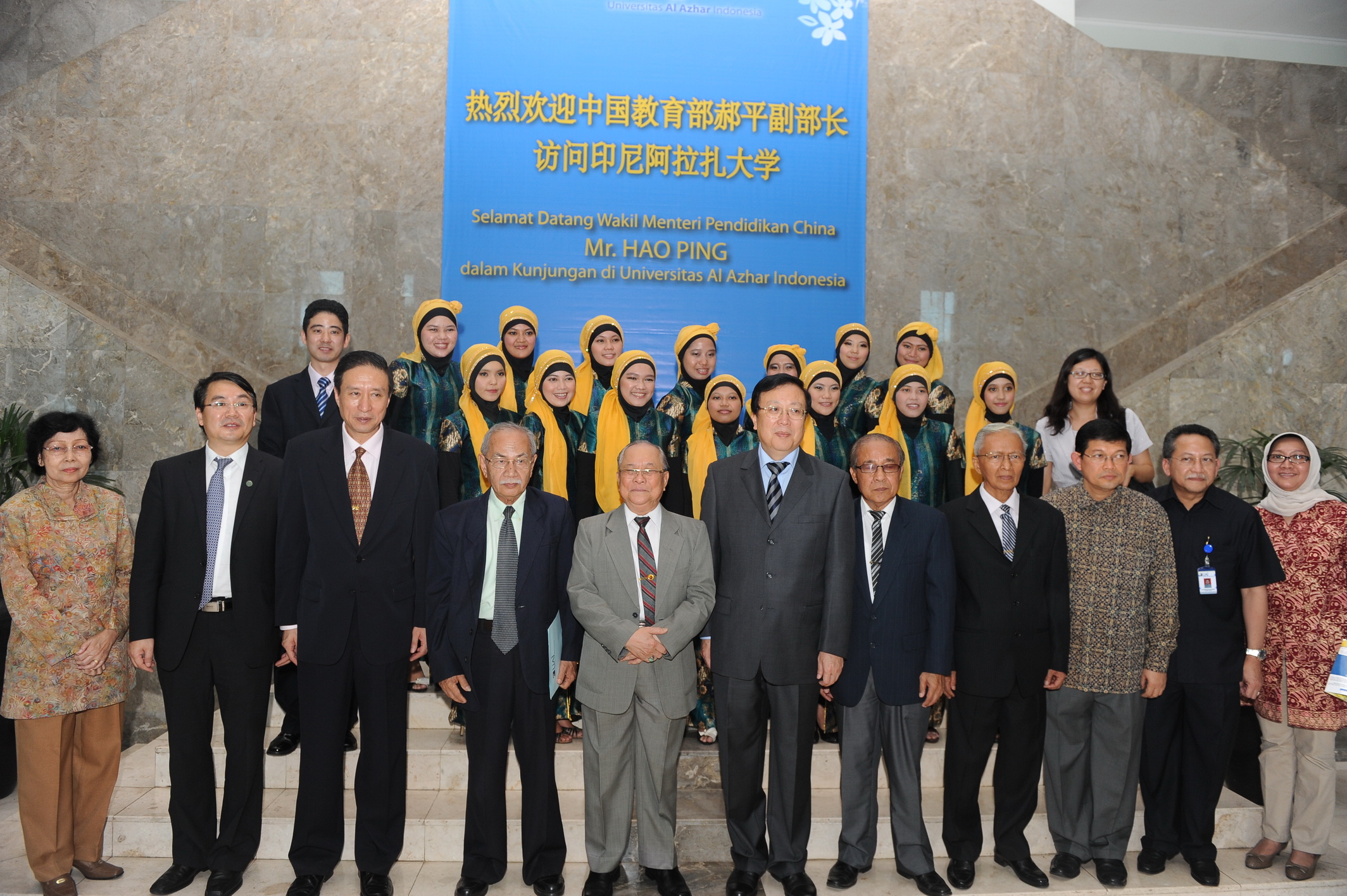 10月17日上午,教育部副部长郝平,国家汉办副主任、孔子学院总部副总干事王永利,教育部国际合作与交流司副司长刘宝利、高教司副司长石鹏建、政策法规司副巡视员柯春辉等一行到印尼阿拉扎大学孔子学院访问。当天,郝平与阿拉扎大学基金会、阿拉扎大学领导举行了座谈会,视察了孔子学院工作,并与汉语教师志愿者亲切交流。