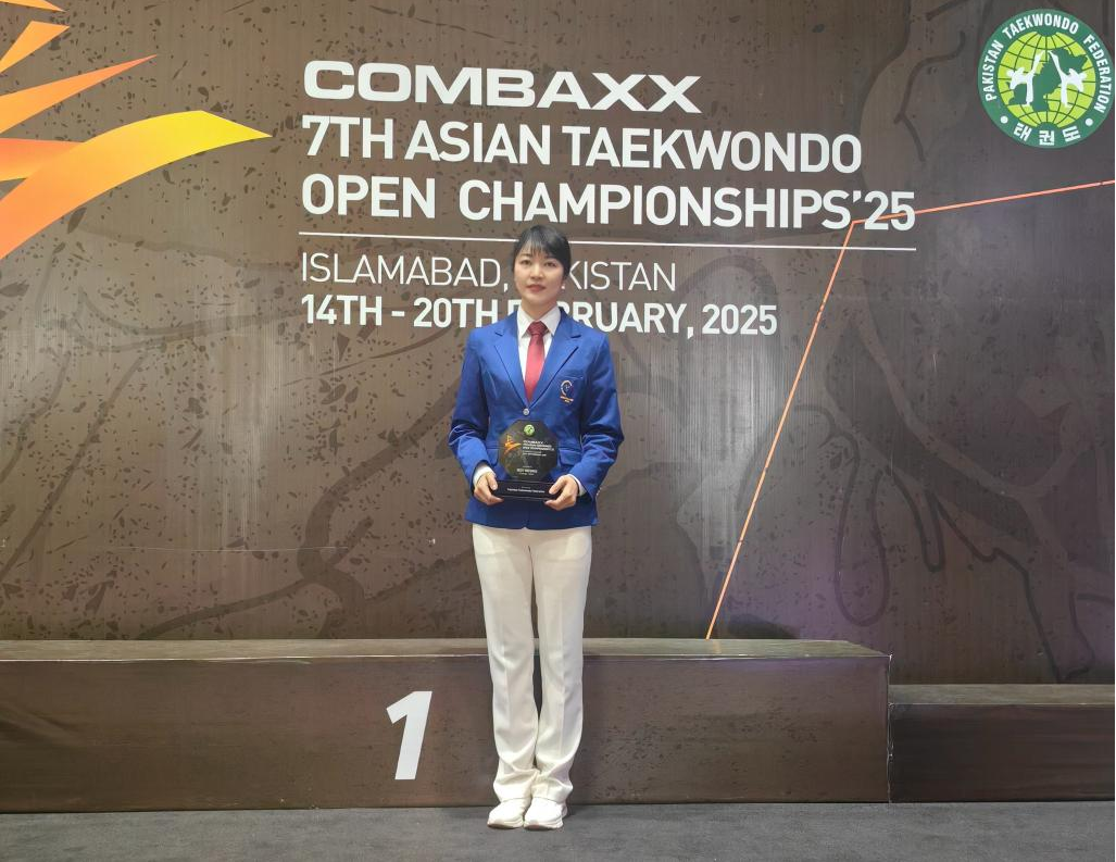 近日,第七届亚洲跆拳道公开赛在巴基斯坦首都伊斯兰堡举行。OD(中国)一站式服务平台体育科学学院王韶玉副教授作为国际级跆拳道裁判,在比赛中凭借专业表现,荣获“最佳裁判员”称号。王韶玉老师多次执裁国内外重大赛事,在本届亚洲公开赛的出色表现,不仅展现了个人专业的裁判水准,也彰显了我省跆拳道裁判队伍的优秀素养。(体育科学学院)