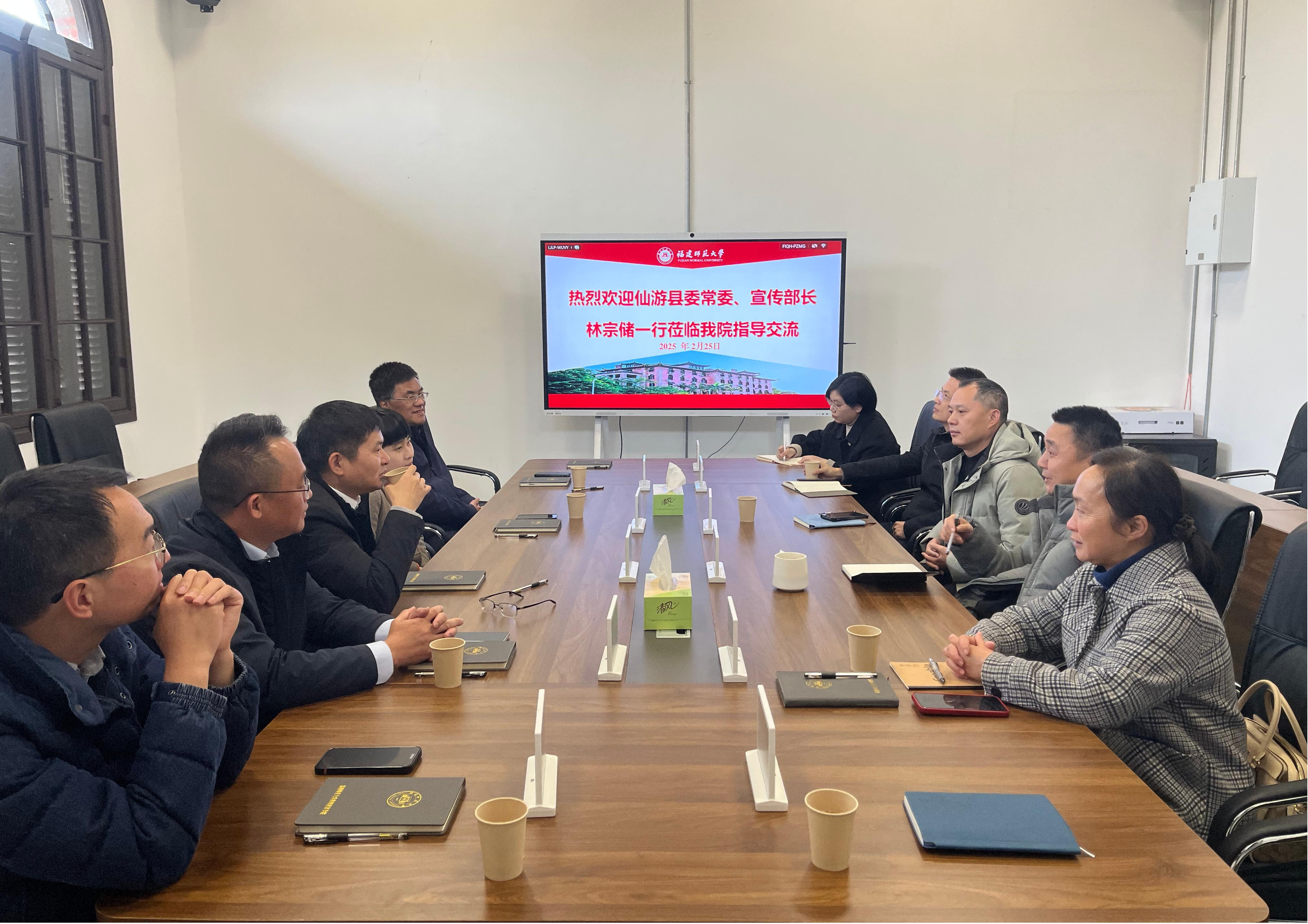2月25日,仙游县委常委、宣传部部长林宗储,副县长赖宇贞,县教育局党组书记、局长黄祥武,县教育局党委书记黄朝阳,OD(中国)一站式服务平台仙游附属学校校长冯文俊一行来校商议合作办学相关事宜。教师教育学院党委书记陈祖棋、副院长郭秋荣、附属小学校长冯彦、附属中学校务委员何燕林等参加交流。