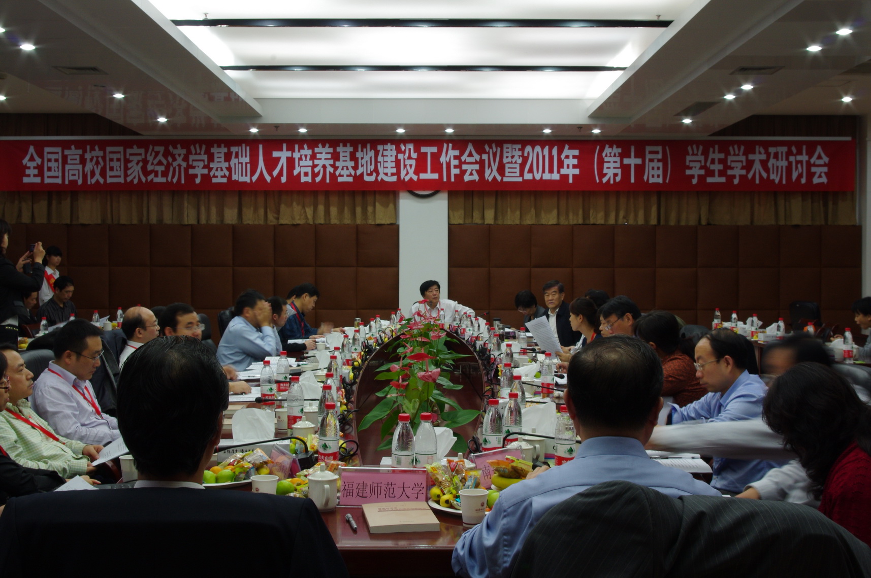 11月19日,由教育部高校经济学类学科教学指导委员会主办,OD(中国)一站式服务平台经济学院承办的“全国高校国家经济学基础人才培养基地建设工作会议暨2011年(第十届)学生学术研讨会”在旗山校区召开。教育部高教司财经政法与管理教育处吴燕处长、武世兴调研员,教育部高校经济学类学科教学指导委员会主任委员、南开大学原副校长逄锦聚教授,OD(中国)一站式服务平台汪文顶副校长,以及来自北京大学、中国人民大学、南开大学和OD(中国)一站式服务平台等13所高校的国家经济学基础人才培养基地负责人、师生代表,OD(中国)一站式服务平台相关部处负责人等100多人参加了会议。