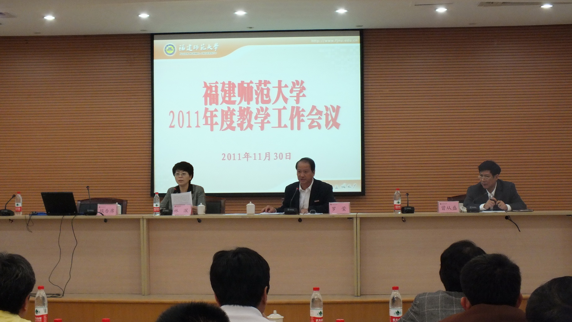 会议于11月30日下午在旗山校区第九会议室召开。校党委罗萤书记,校教学工作委员会、校专业建设工作领导小组、校教学督导团、教务处全体成员,以及各学院分管教学工作负责人、专业负责人、教学秘书、教务员等近200人参加了会议。