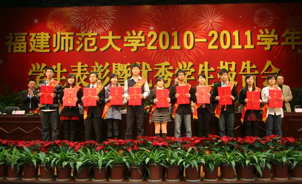 会上,校纪委许歌平书记和凌启淡副校长分别宣读了2010-2011学年国家奖学金获得者以及受省级、校级表彰的学生集体和个人名单。本次大会共表彰了43名国家奖学金获得者;6个福建省先进班集体、11名福建省优秀学生干部、19名福建省三好学生;44个校先进班集体、36名校三好学生标兵、912名校优秀学生干部、808名校三好学生;4名校长特别奖学金获得者、5256名校优秀学生奖学金获得者。