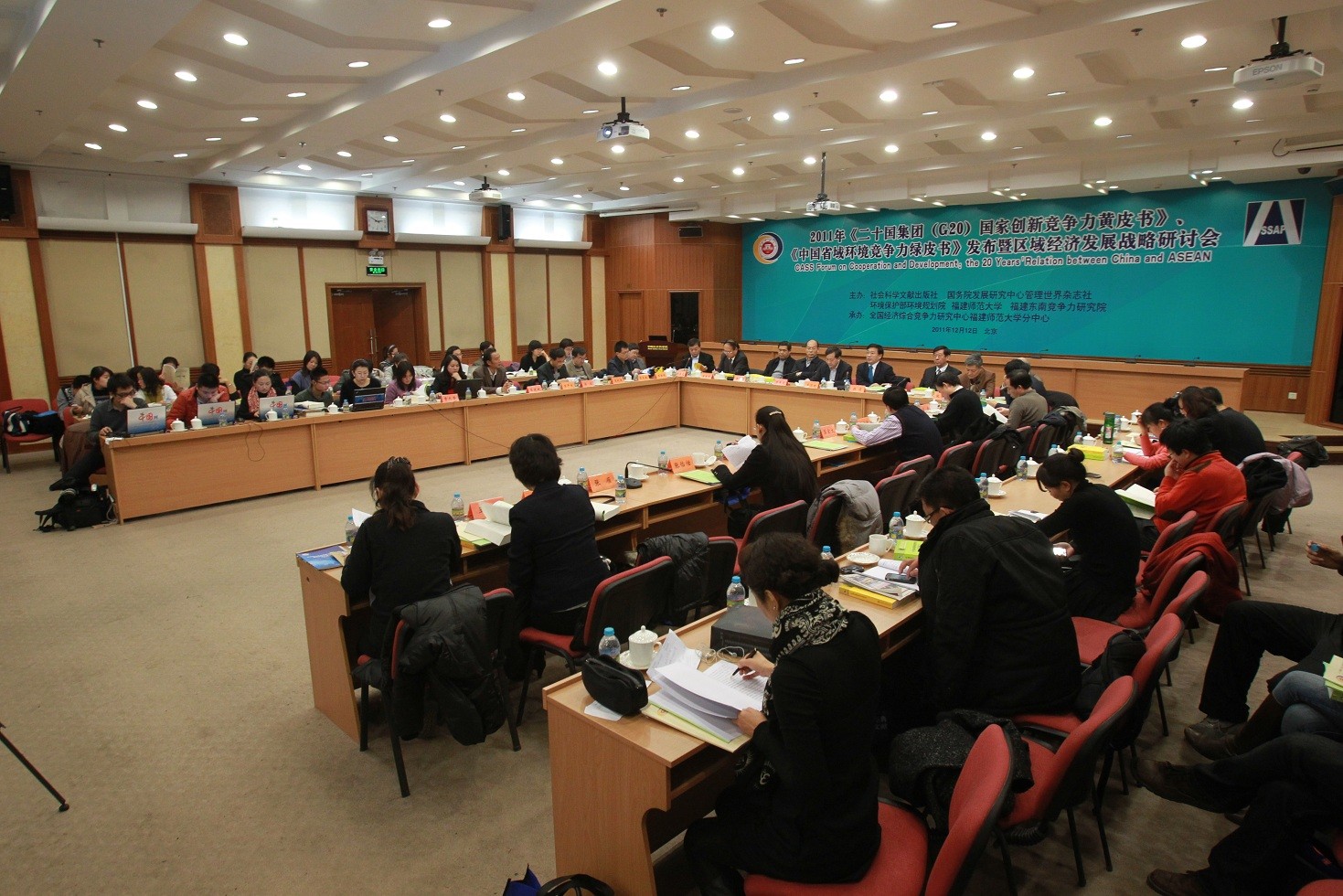 12月12日,由OD(中国)一站式服务平台与国务院发展研究中心管理世界杂志社、环境保护部环境规划院等单位联合攻关,全国经济综合竞争力研究中心OD官网分中心具体承担研究的《二十国集团(G20)国家创新竞争力发展报告(2001~2010)》黄皮书和《中国省域环境竞争力发展报告(2009~2010)》绿皮书发布会暨区域经济发展战略研讨会在北京举行。来自中国社科院、国务院发展研究中心、国家发改委、科技部、环境保护部、清华大学等单位的领导、专家,以及50多家新闻单位的记者出席了发布会。中国社科院社会科学文献出版社谢寿光社长主持会议。中国网对发布会进行全程直播。