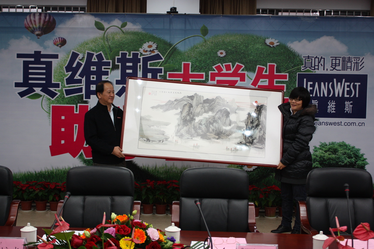 罗萤书记代表学校向真维斯公司林喜红总经理赠送
