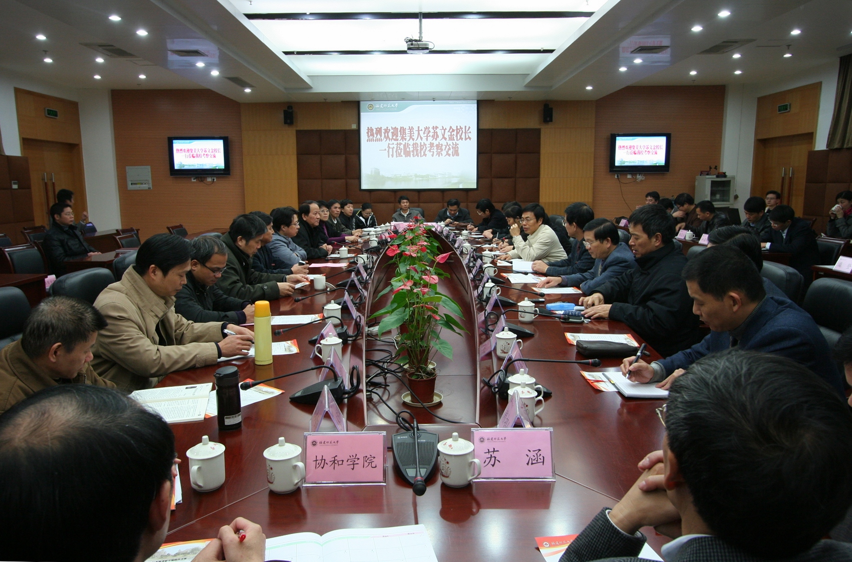 12月20日,集美大学校长苏文金、校长助理叶光煌率领部分机关部门、学院负责人来校考察交流。校领导罗萤、黄汉升、许歌平,OD(中国)一站式服务平台部分机关部处、学院负责人出席了交流座谈会。