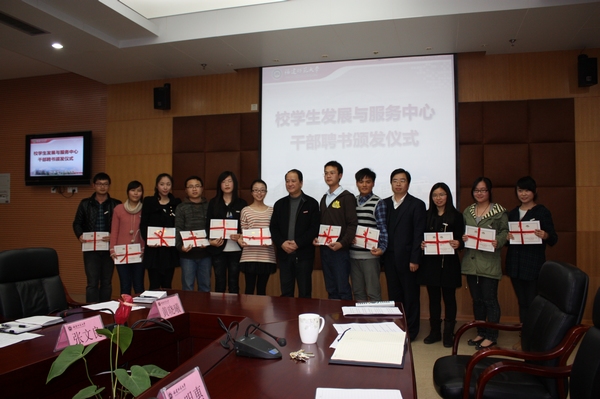 会上,罗萤为校学生发展与服务中心的全体成员颁发了聘书。校学生发展与服务中心十一个部门的负责人分别就学生如何参与学校管理作了主题发言。 [学工部(处)辜陈君]