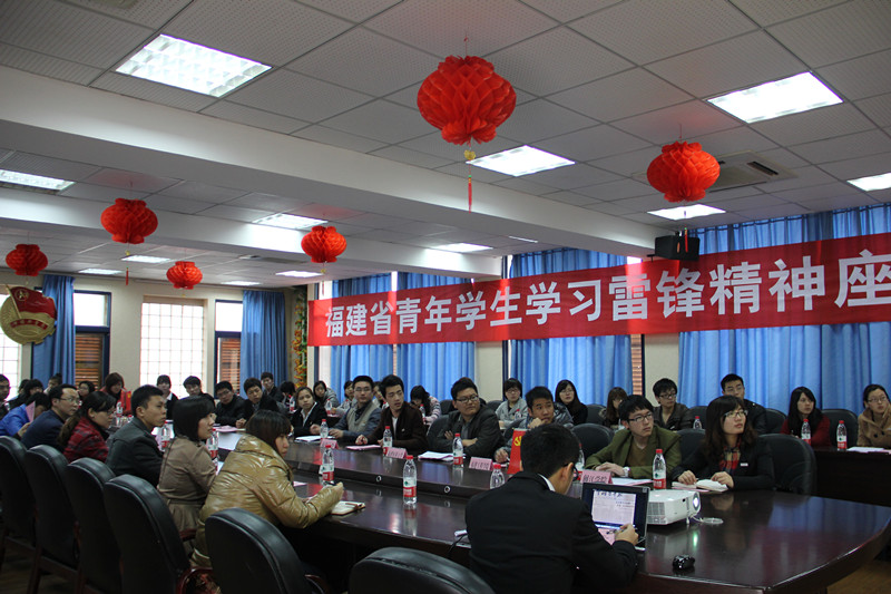 陈娴同学代表福建省学联,号召全省大学生在3月5日前后广泛开展学雷锋活动,掀起我省青年学生学雷锋活动的高潮。李嘉副部长勉励同学们从点滴做起,从小事做起,在立足岗位做奉献的同时带动身边更多人学雷锋,将研究雷锋精神与弘扬“福建精神”有机结合,共同构建幸福校园、幸福社会。