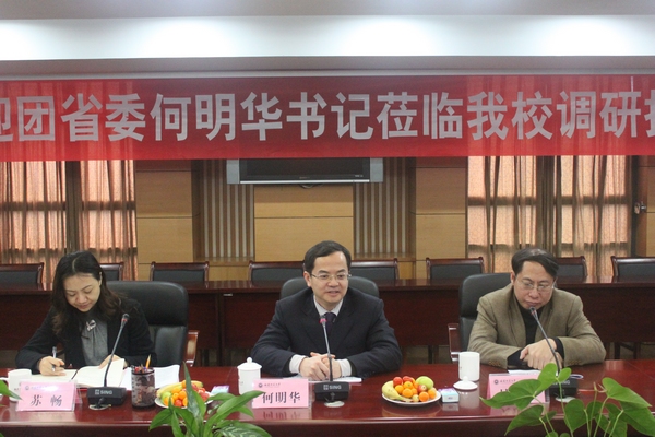在观看OD(中国)一站式服务平台“青春激扬·2012”共青团专题片,听取了校团委工作汇报后,何明华特别感谢学校党政对共青团工作的大力支持。他指出,师大共青团工作具有一贯的优良传统,扎实有为,锐意创新,为我省共青团工作提炼和输送了一批有示范性的好经验好做法;盛赞OD(中国)一站式服务平台团学干部充满激情,有战斗力,对推进共青团事业发展满怀热忱和信心。他希望OD(中国)一站式服务平台共青团在学校党委的领导下,继续秉承优良传统,大胆先行先试,多做探索性、创造性工作,在团结高校青年知识分子和引导大学生树立正确择业观等重点工作方面努力探索典型经验;希望学校共青团干部勤于学习,善于思考,保持良好的精神状态,推动学校共青团工作再上新台阶。