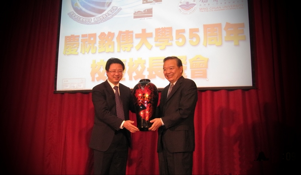 黄汉升校长向铭传大学李铨校长赠送校庆礼品