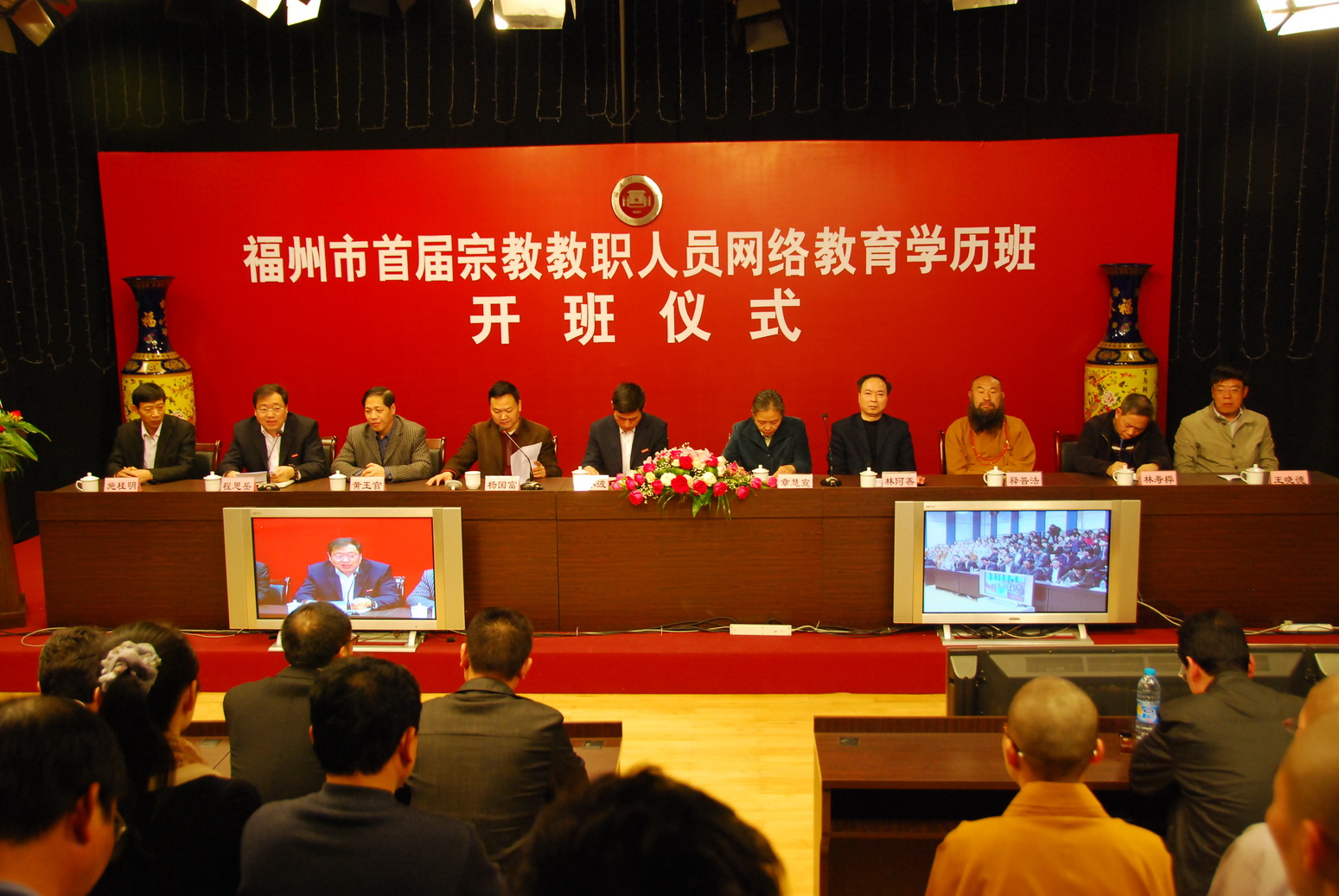 章慧宣、游小波、林阿善以及学员代表先后致辞,大家一致认为,举办宗教教职人员学历班,是福建师大充分发挥百年老校的学科和师资优势,校地联合开展网络教育的有益探索,也是中青年宗教人士开阔视野、增长才干的内在需要,这一举措将有效推动高素质宗教人才的培养,促进我省宗教文化健康发展。