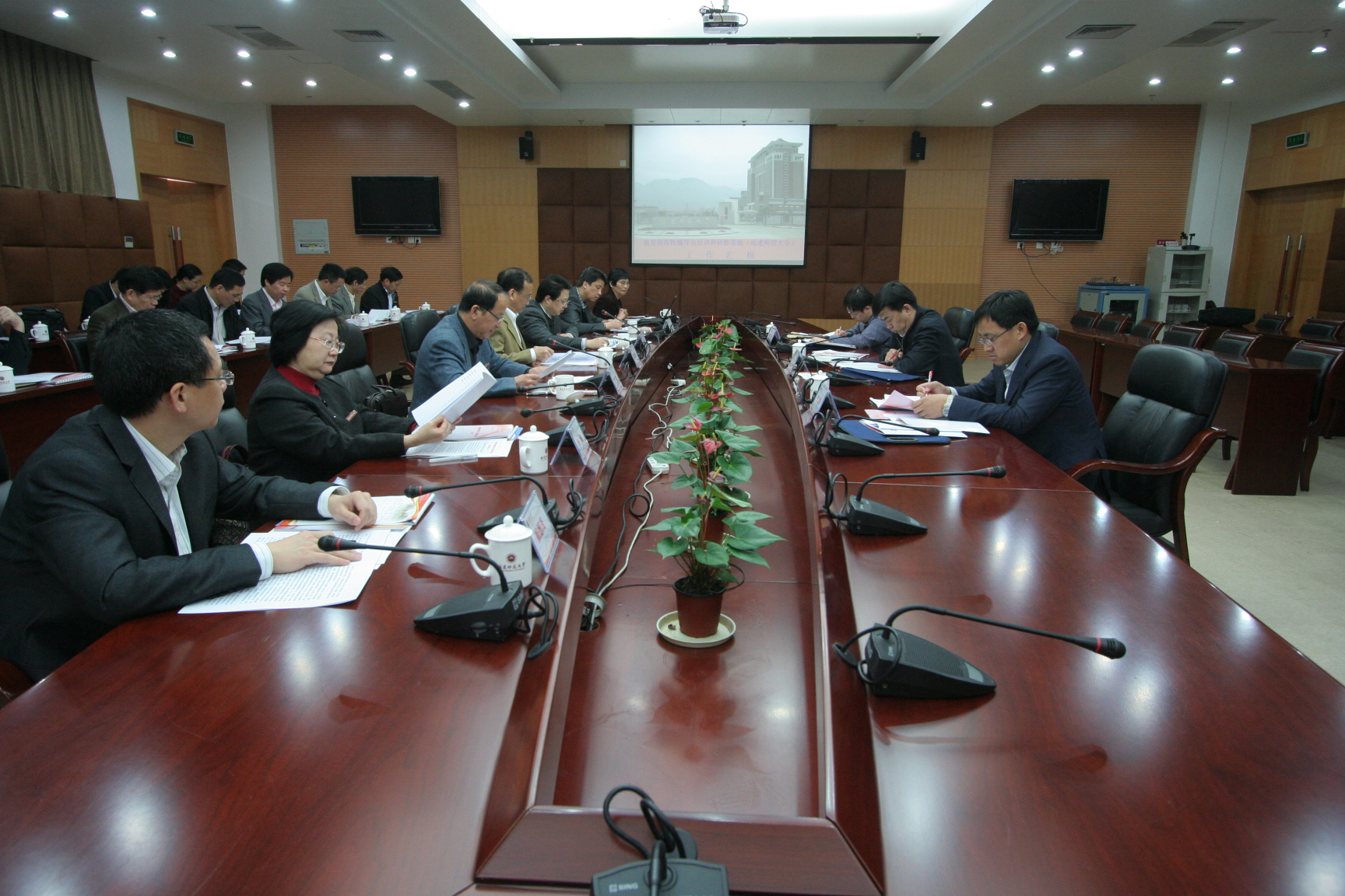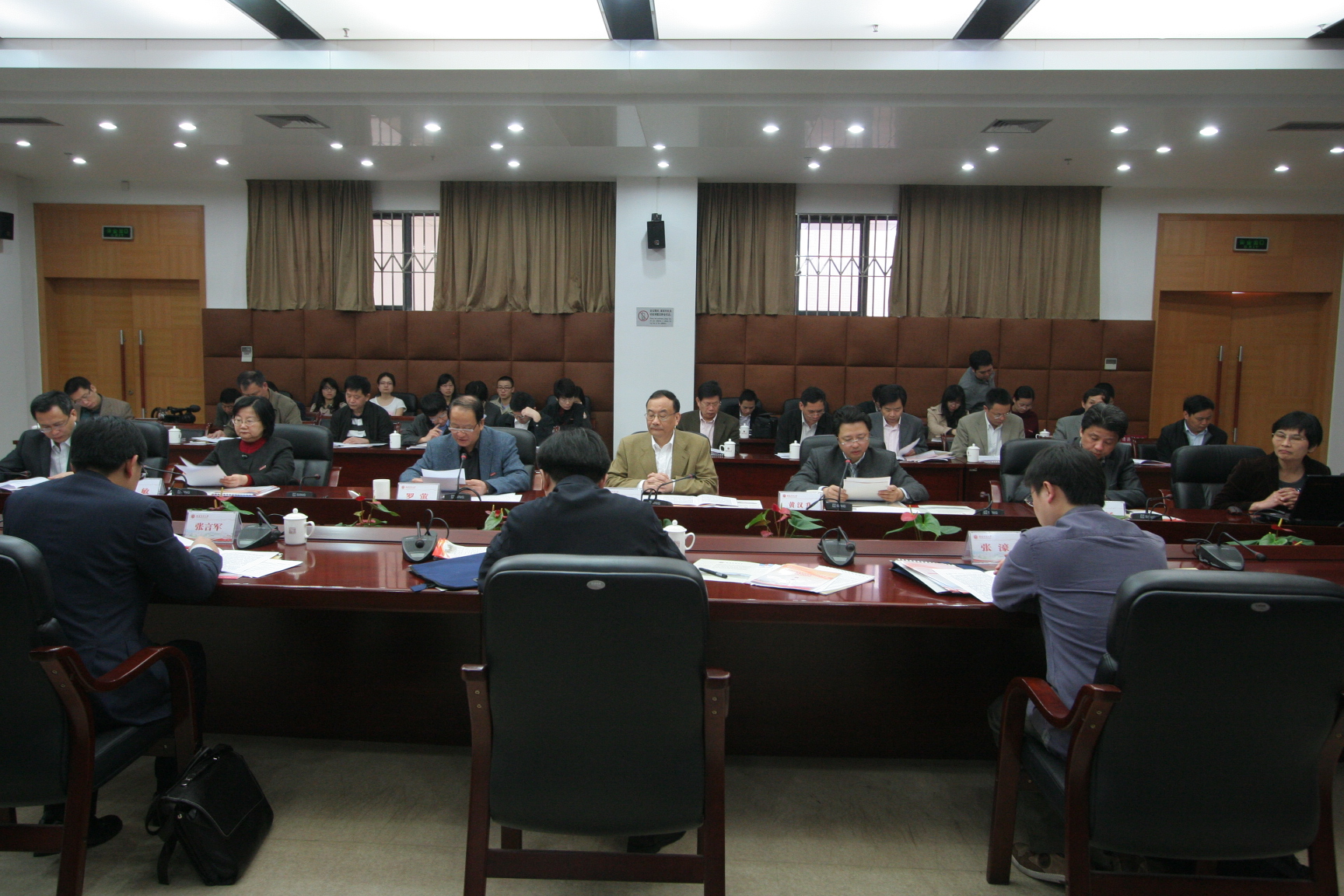评估汇报会于当天上午在旗山校区第十会议室举行。评估组专家于立军、张言军、张濠,省委教育工委副书记、省教育厅党组成员郭绍生,省委教育工委宣传部部长叶杨、副部长修德茂,校领导罗萤、黄汉升、李敏,学校办公室、宣传部、学工部、研工部、校团委、人事处、财务处、后勤管理处、资产经营公司、图书馆负责人,马克思主义学院党政负责人、思想政治教育博士点负责人参加了汇报会。