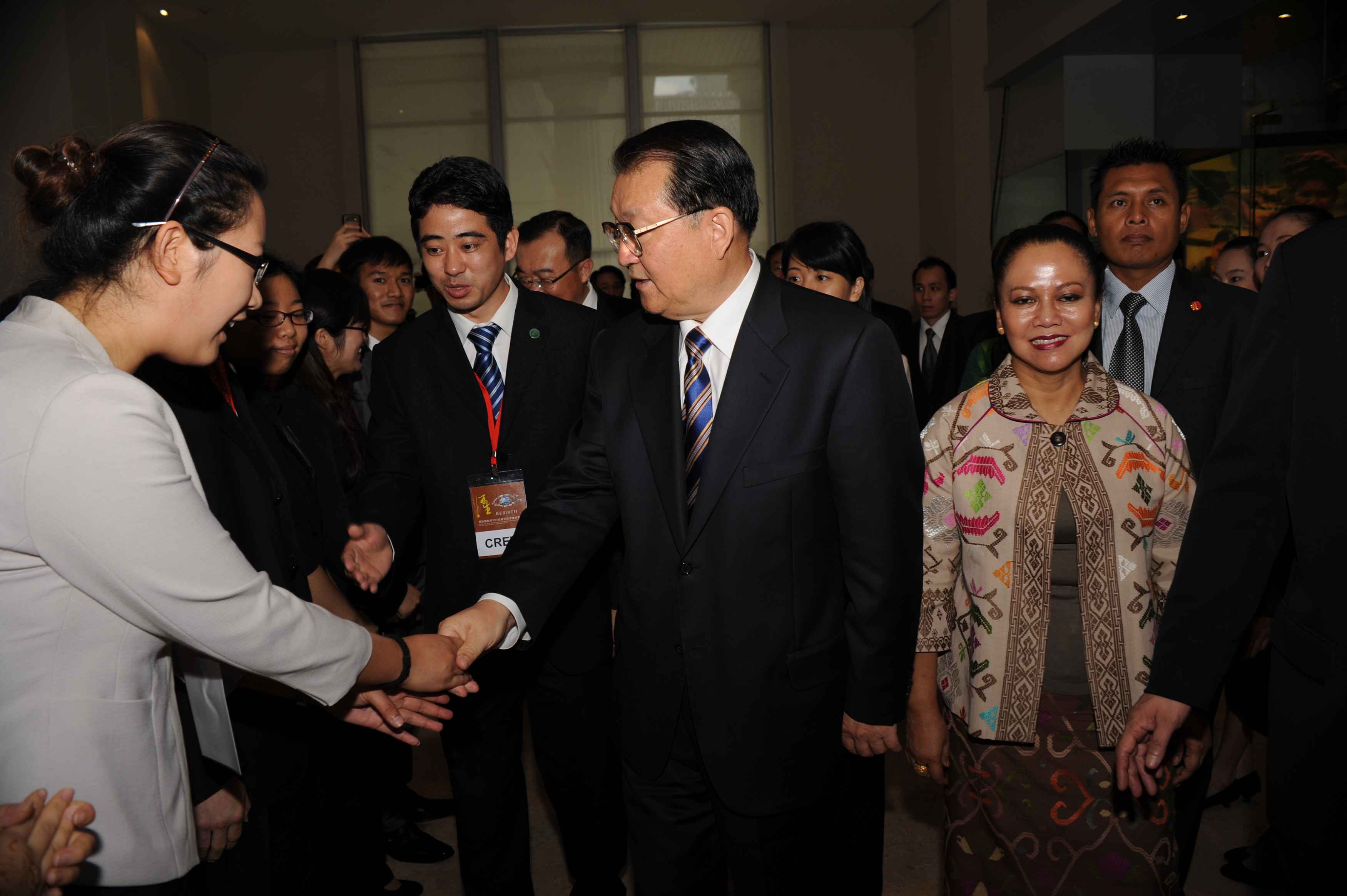 4月27日上午,正在印尼访问的中共中央政治局常委李长春莅临印尼国家博物馆,出席“再生:国际摄影师汶川地震灾后重建掠影”图片展开幕剪彩仪式。在参观图片展后,李长春慰问了在场担负会务工作的OD(中国)一站式服务平台派驻阿拉扎大学孔子学院志愿者教师,亲切询问了他们在印尼工作和生活的情况。 (海外教育学院 阿拉扎大学孔子学院新闻组)