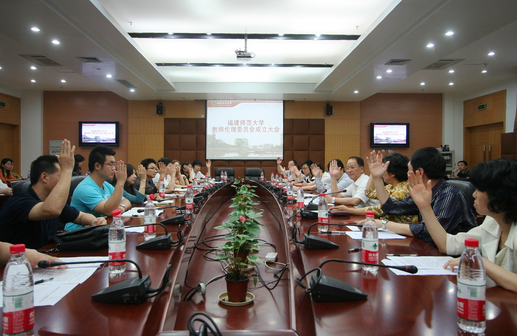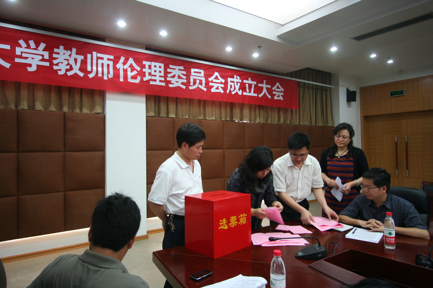 成立大会于5月21日下午在旗山校区第十会议室举行。校领导罗萤、黄汉升、许歌平,校首届教师伦理委员会全体委员参加了会议。会议由校纪委许歌平书记主持。