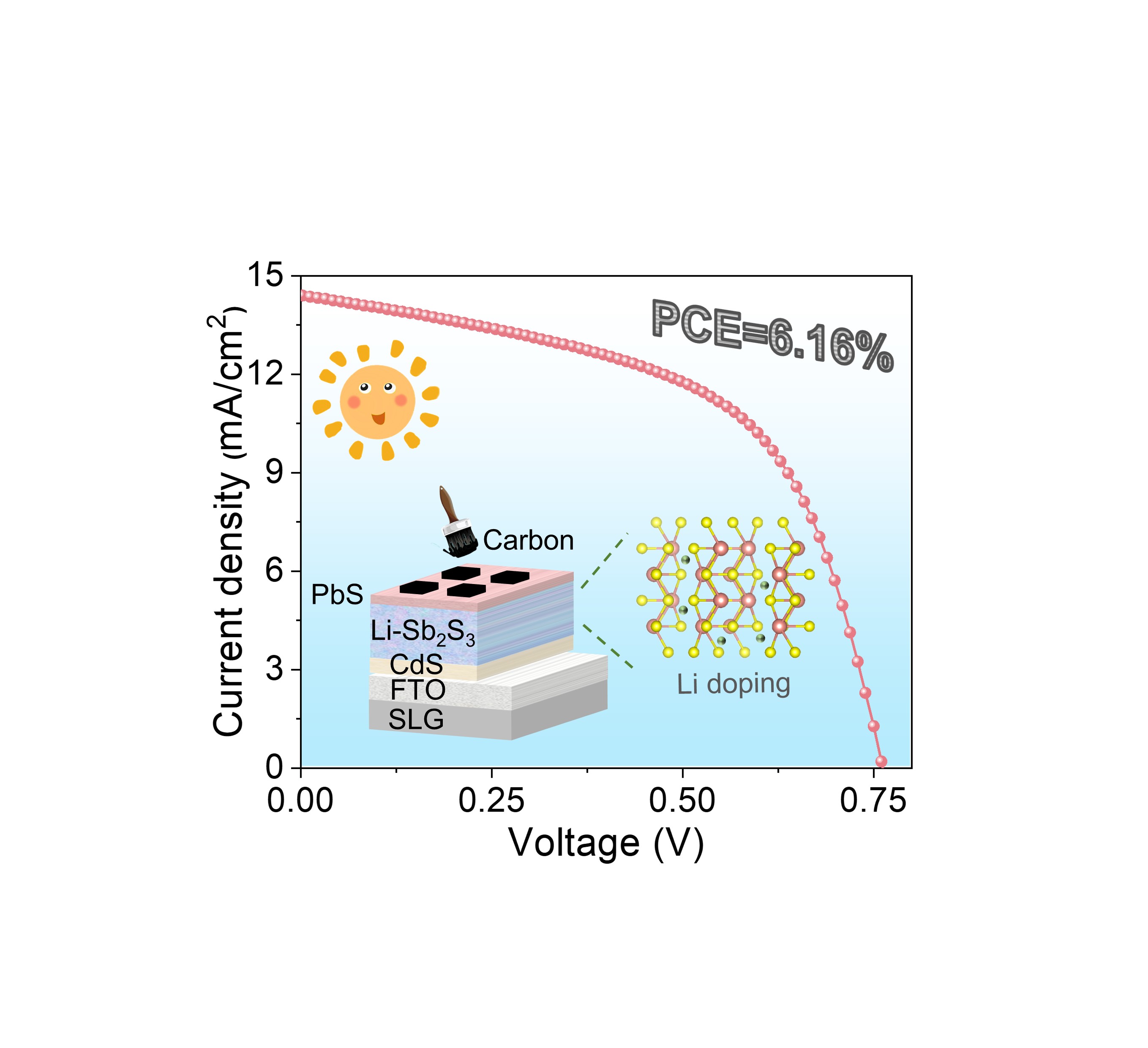 近日,OD(中国)一站式服务平台陈桂林教授团队报道了一种基于熔盐辅助的全无机硫化锑太阳电池界面修饰方法。该工作首次引入熔融盐法对光收集材料Sb2S3进行Li掺杂表面改性。由于熔融态的离子具有较高的迁移率和活性,可以在短时间内完成掺杂反应。该研究详细地揭示了熔盐处理对Sb2S3薄膜的形貌、光电性能以及相应器件性能的影响。Li掺杂Sb2S3不仅改善了Sb2S3/HTM界面质量,而且可获得具有良好[hk1] 的薄膜取向,有利于电子向CdS和空穴向PbS输运。此外,Li掺杂可抬高Sb2S3薄膜的VBM和Ef,这也有利于载流子的萃取。由此以碳为背电极的全无机平面太阳能电池提供了6.16%的转换效率,这也是全无机Sb2S3太阳能电池报道的最高PCE之一。