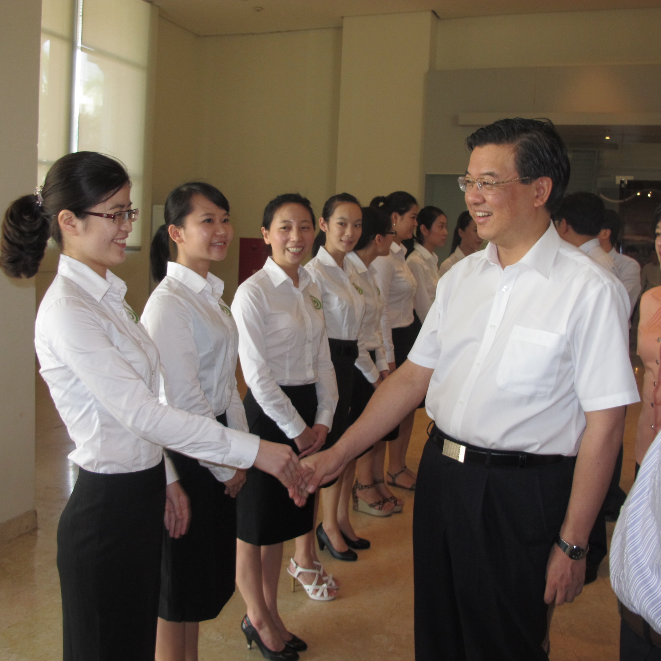 5月25日上午,正在印尼访问的倪岳峰副省长率福建省代表团一行在雅加达亲切会见了OD(中国)一站式服务平台派驻阿拉扎大学孔子学院公派教师和汉语教师志愿者。