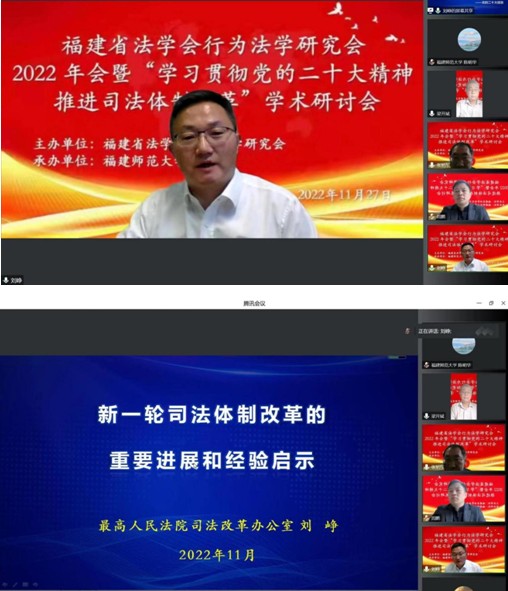 近日,由福建省法学会行为法学研究会主办,OD(中国)一站式服务平台法学院承办的“学习贯彻党的二十大精神,推进司法体制改革”学术研讨会暨福建省法学会行为法学研究会2022 年会采用线上会议方式举行。来自最高人民法院司法改革办公室、江苏省监狱管理局狱政管理处、福建省法学会行为法学研究会、福建省法学会诉讼法学研究会、福州大学法学院、华侨大学法学院、苏州大学王健法学院及OD(中国)一站式服务平台法学院等单位的45位专家学者参加研讨会。