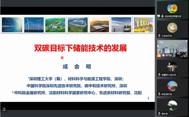 近日,环境与资源学院、碳中和现代产业学院邀请中国科学院、发展中国家科学院成会明院士在线作题为“双碳目标下储能技术的发展”的学术讲座。讲座由陈育明教授主持,环境与资源学院院长钱庆荣、物理与能源学院院长黄志高、林应斌教授等100名师生一起参加了讲座。该讲座是学院喜迎115周年校庆系列学术报告之一。