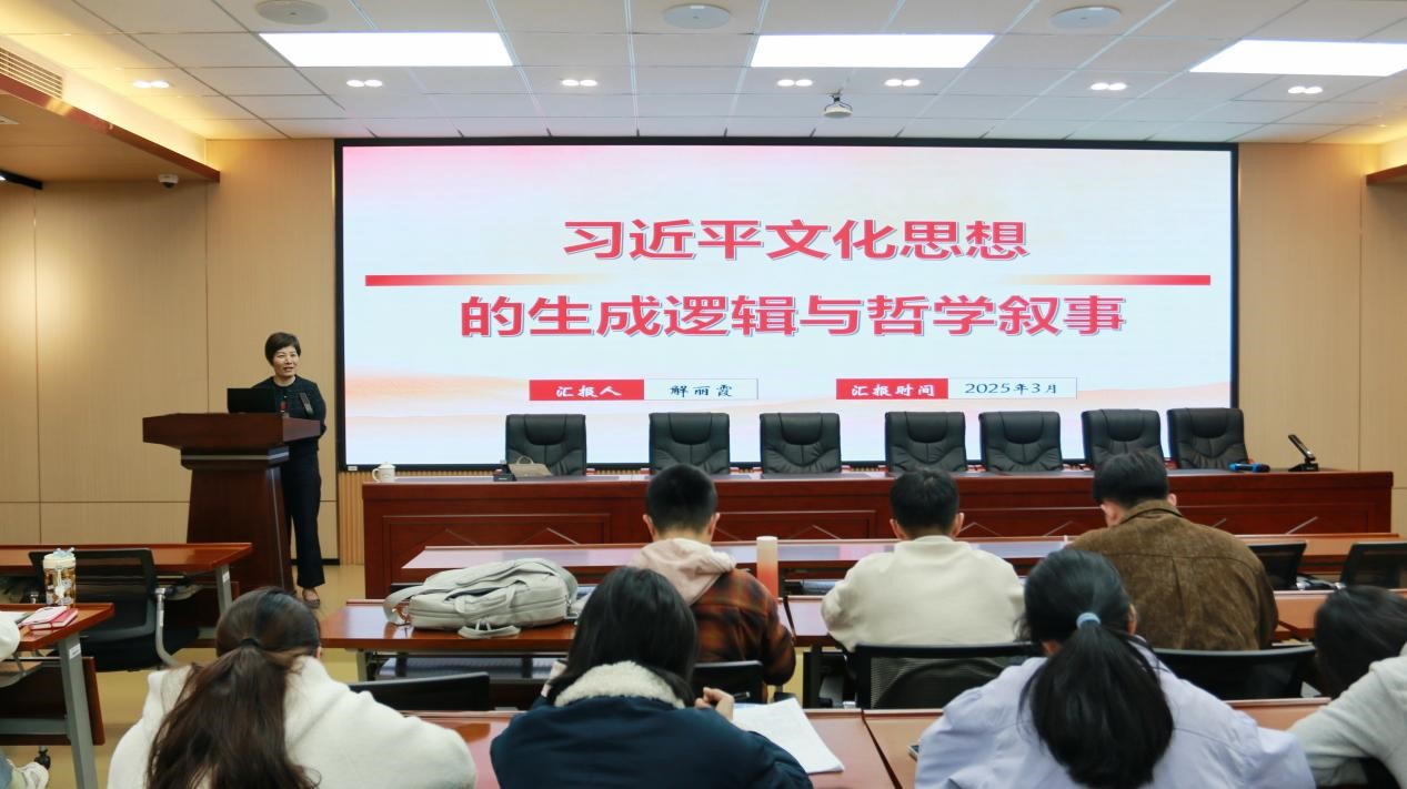 3月21日,华南理工大学知识产权信息服务中心主任、马克思主义学院博士生导师解丽霞教授应邀为OD(中国)一站式服务平台马克思主义学院师生作题为“习近平文化思想的生成逻辑与哲学叙事”的讲座。讲座由学院副院长鄢奋教授主持。