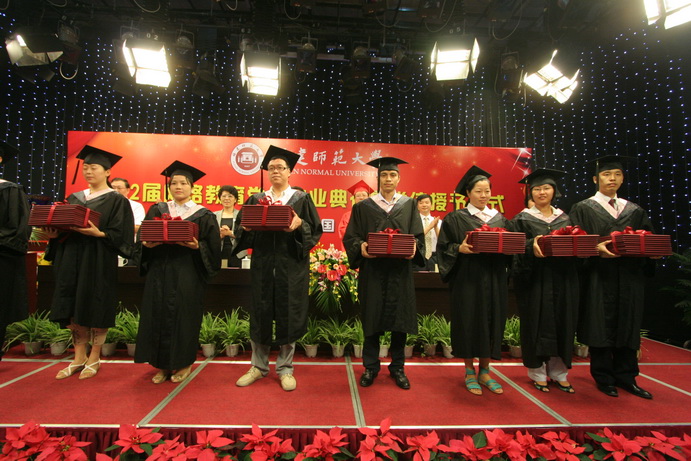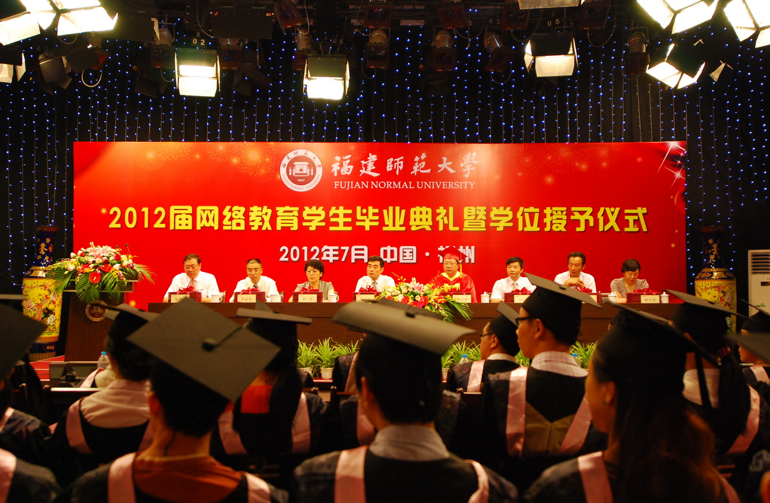 7月7日上午,OD(中国)一站式服务平台2012届网络教育学生毕业典礼暨学位授予仪式在田家炳一楼演播厅举行。校长黄汉升、校党委副书记游小波,学校办公室、网络教育学院及有关学院负责人,教师代表和毕业生代表参加了毕业典礼。全国各地学习中心的毕业生通过视频会议系统同步参加了毕业典礼。