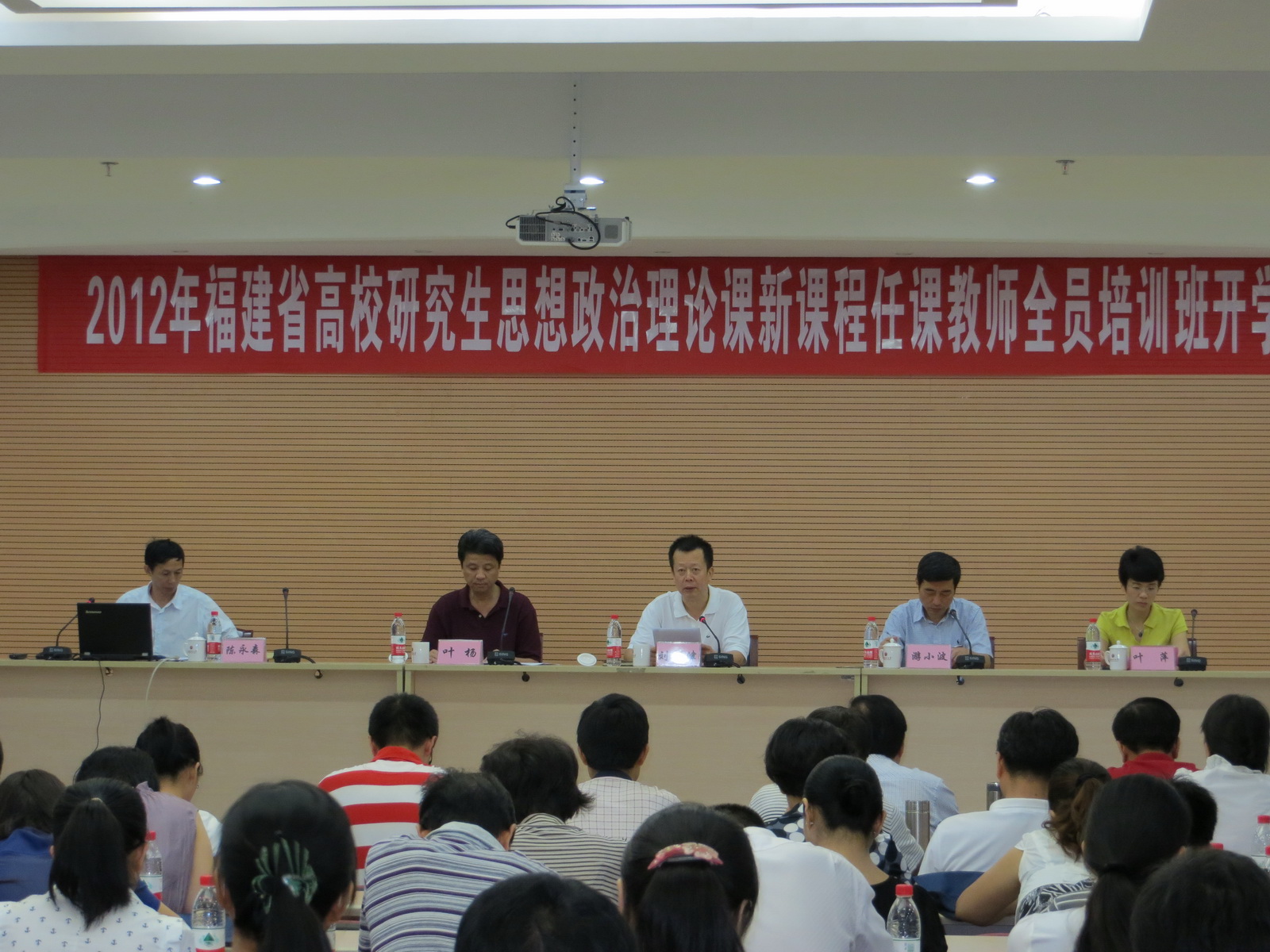 8月1日上午,2012年全省高校研究生思想政治理论课新课程任课教师全员培训班开班仪式在OD(中国)一站式服务平台旗山校区举行。省委教育工委副书记、教育厅党组成员刘剑津,校党委副书记游小波,省委教育工委宣传部部长叶杨,承担培训教学任务的负责人,以及50余名来自全省各高校的研究生思想政治理论课教师参加了开班仪式。