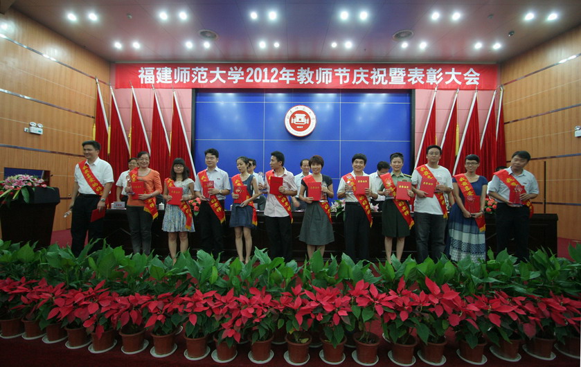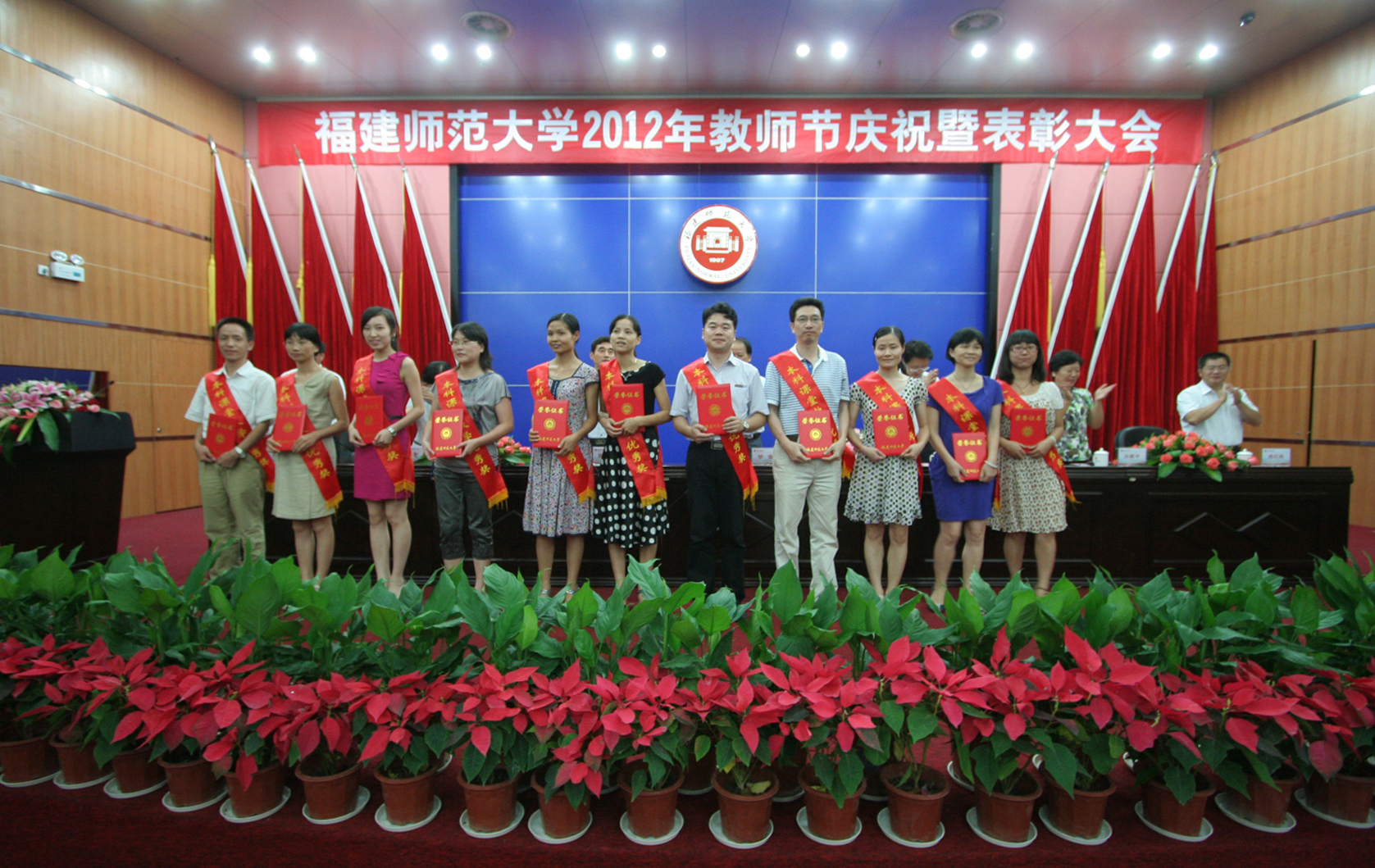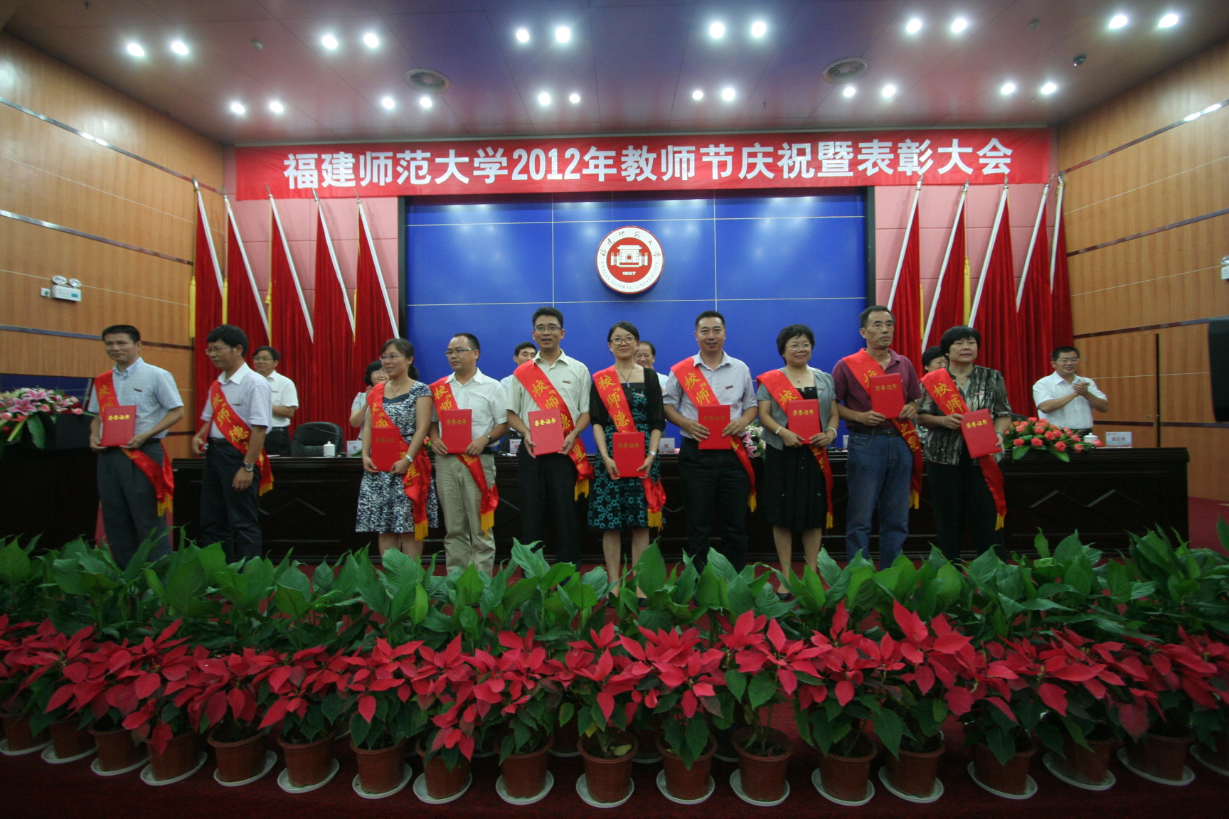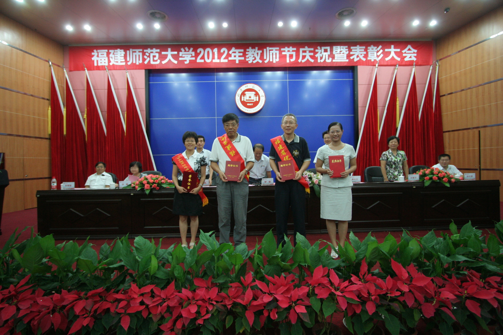 李敏副校长宣读了2012年教师节表彰名单。与会领导为省第三届杰出人民教师、省优秀人才、首届“全国高校思想政治理论课教学能手”、校留学生汉语专项技能培养团队、省首届高校青年教师教学竞赛获奖者、校首批“五一先锋岗”获奖集体、福州市创建全国文明城市工作先进单位和先进个人、校第六届“师德之星”获得者、校首届“我最喜爱的好老师”、校2011年度中青年教师课堂教学比赛获奖者、校2010年度本科课堂教学优秀奖获奖教师颁奖。