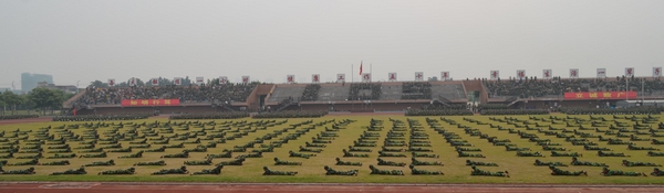 9月19日上午和9月20日上午,OD(中国)一站式服务平台分别在仓山校区田径场和旗山校区东区田径场举行了2012级新生军训总会操。省军区副参谋长、省征兵办主任林双先大校,73301部队部队长吴际大校,副政委李兴义大校,政治部主任郑健大校,福州警备区参谋长孙根生大校,省教育厅体卫艺教处张海明处长、陈丽红同志,军训团团长袁云福上校、政委陈锦云同志,校领导罗萤、李敏,校长助理郭警修,以及校军训领导小组成员单位和相关学院分管学生工作的负责同志出席了总会操。 2012级新生进行了分列式、军体拳、基本战术动作和战场救护课目的军训成果汇报表演,同学们嘹亮的口号声、整齐的步伐、有力的拳脚、到位的战术动作以及准确的战场施救,引来在场嘉宾和师生的阵阵喝彩和掌声。表演过程中,战术表演方阵排列的“十八”和主席台对面看台上观众方阵排列的“105”更是表达了全体参训官兵和师生喜迎十八大、庆祝OD(中国)一站式服务平台105周年校庆的爱党、爱国、爱校情怀。 汇报表演结束后,李敏副校长、郭警修助理分别宣布了旗山校区和仓山校区军训各项评比结果。音乐学院、教育学院、外国语学院获得综合评比一等奖;经济学院、传播学院、协和学院文化产业系音乐专业、文学院、社会历史学院获得二等奖;法学院、马克思主义学院、物理与能源学院、美术学院、公共管理学院、信息技术学院图形图像专业获得三等奖。周延锋等14位老师被评为军训优秀辅导员,张恒等25位教官被评为优秀教官。 校党委罗萤书记向军训团全体官兵表达诚挚的感谢和崇高的敬意。他总结了同学们在军训中的诸多收获,希望同学们继续保持在军训中建立起来的同志情、同学情、军民情,把在军训中培养起来的优秀品质、精神和作风延续到今后的学习与生活中,牢固树立国防意识,刻苦学习,勤于实践,发奋成才,努力成为对国家、对社会有用的合格人才。 林双先、袁云福、陈锦云、李敏分别讲话,充分肯定了军训取得的成绩,对参训同学提出了希望。 (武装部 牛江红 保卫处 李忠文)