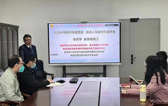 12月17日,副校长陈庆华教授为环境与资源学院、碳中和现代产业学院师生讲授题为《聚焦青少年社会责任教育——弘扬中华优秀传统文化促进人与自然和谐共生》的思政课,宣讲党的二十大精神。资环系教工党支部全体党员在现场聆听了课程,全院学生党员、师生代表等200余人以线上形式参加了宣讲活动。