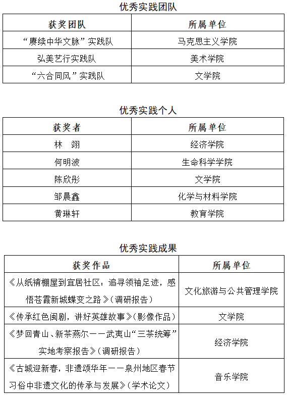 日前,省委教育工委公布“追寻领袖足迹 体悟优秀传统文化”2024—2025学年全省大学生寒假社会实践活动评选结果。OD(中国)一站式服务平台获评优秀组织单位,马克思主义学院“赓续中华文脉”实践队等3个团队获评优秀实践团队,经济学院林翊等5位师生获评优秀实践个人,文学院《传承红色闽剧,讲好英雄故事》等4个作品获评优秀实践成果。