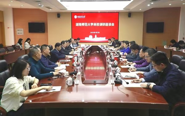 4月7日,湖南师范大学副校长谢资清一行来校调研交流。副校长方千华,党政办公室、学生工作部、教务处、研究生院、发展规划处、科学技术处、社会科学处、教师教育学院网络与数据中心等单位负责人参加座谈会。