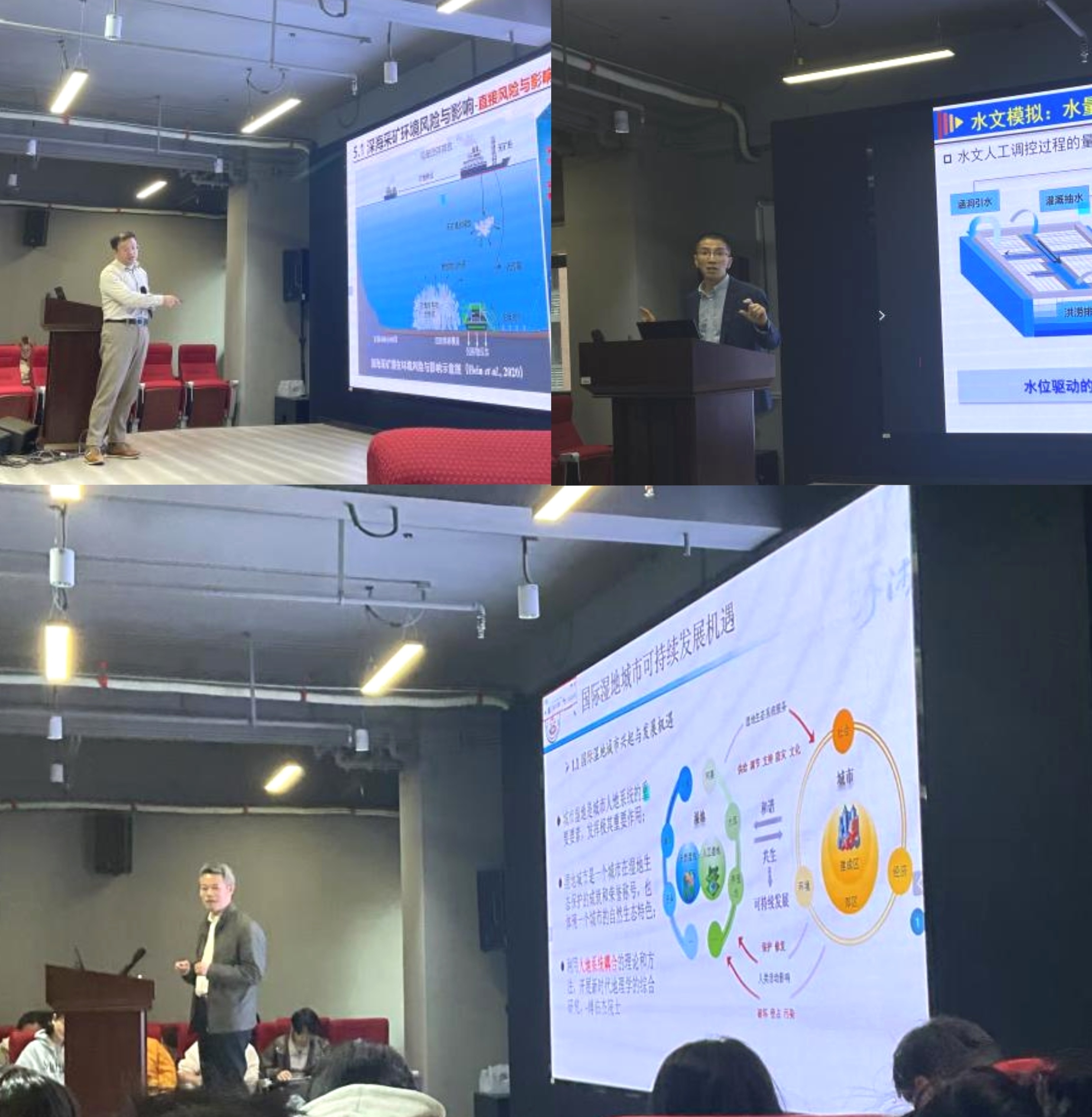 近日,地理科学学院邀请北京师范大学教授蒋卫国、中国科学院南京地理与湖泊研究所研究员黄佳聪和自然资源部第三海洋研究所正高级工程师罗阳分别作题为“国际湿地城市机遇与城市湿地遥感监测评估趋势”“平原河网区三水过程与效应”“深海矿产资源开发的环境风险、影响与应对”的学术报告。讲座由蔡炳贵研究员、杨平研究员主持。