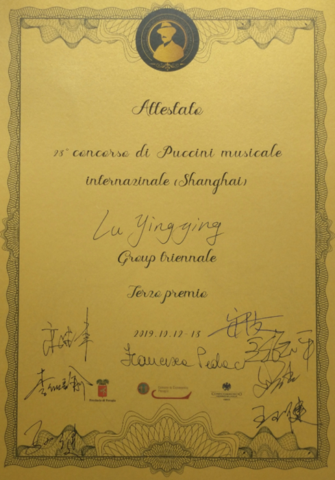 学生卢莹颖在普契尼国际声乐比赛获奖