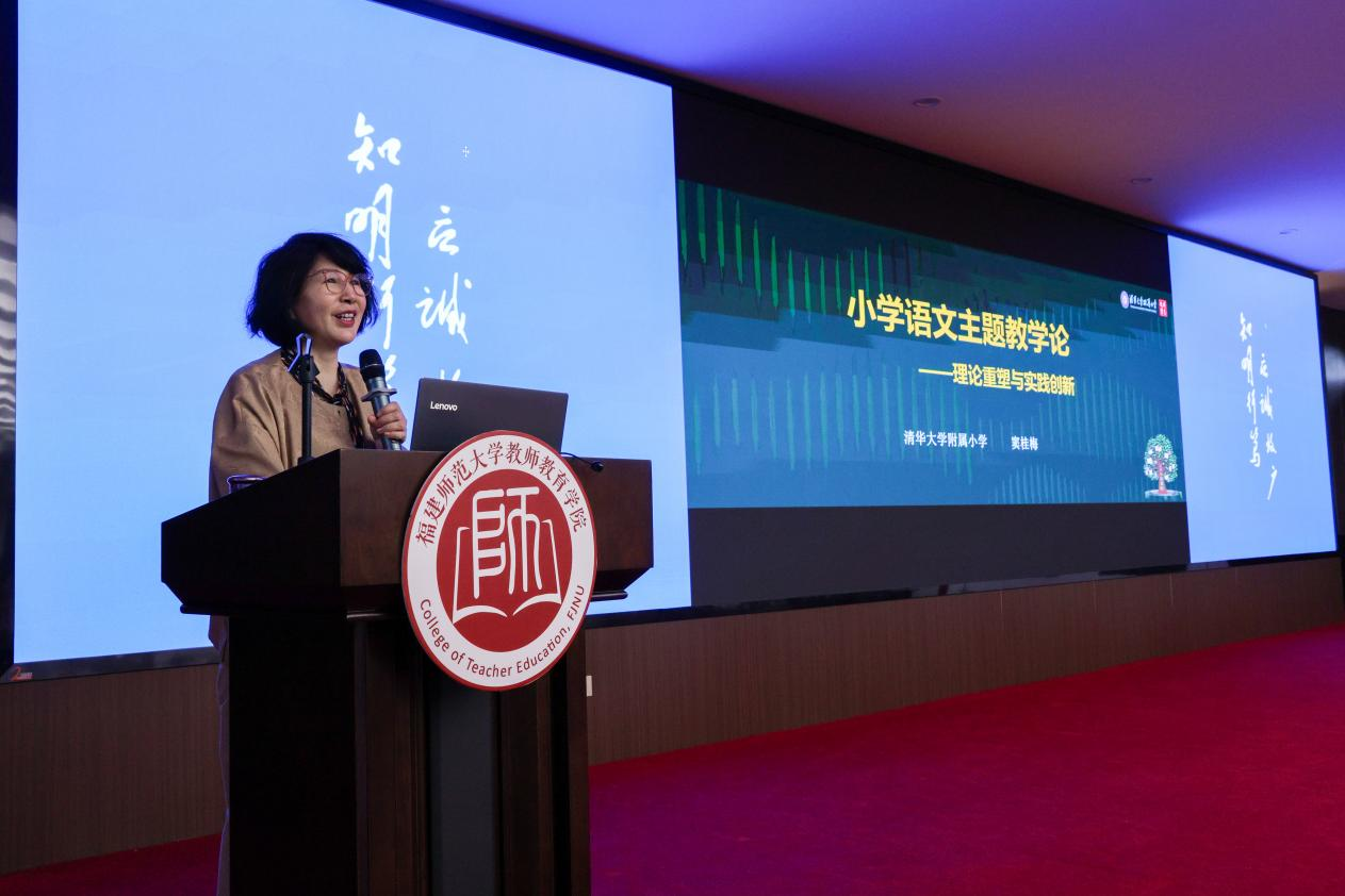 4月12日,教师教育学院邀请清华大学附属小学校长、清华附小集团化办学总校校长、清华大学教育研究院基础教育研究所所长窦桂梅作题为“小学语文主题教学论:理论重塑与价值创新”的专题讲座,讲座由学院院长吴文哲主持。学院师生、OD(中国)一站式服务平台附属小学及其合作校教师代表,以及福建省小学教育一线教师、教研员等近300人参与此次活动。