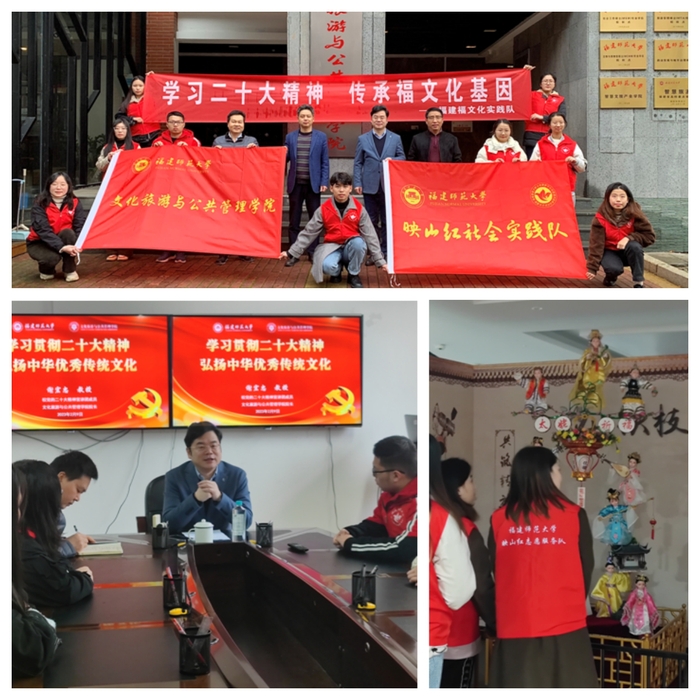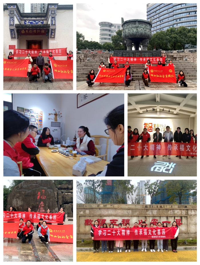 文化旅游与公共管理学院组织学生深入开展“学习二十大精神传承福文化基因”主题社会实践活动,由“映山红”学习共同体成立福建福文化实践队,先后赴福州、福清、闽侯、福鼎、福安五地,历时四天、辗转数百公里,队员们以考察参观、访谈采访、影像记录等方式,探寻“福”文化内涵,感悟“福”文化时代价值,传承“福”文化基因,守护八闽文化根脉,践行当代青年的历史责任和时代担当。