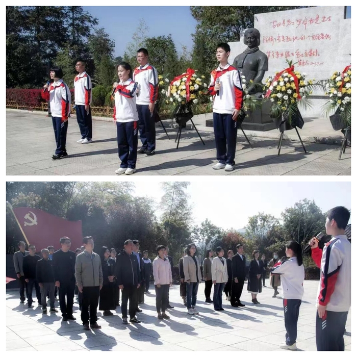 “高尚,追随真理,勇往直前,定格青春年华……”活动当天,附中师生在罗峰村举行了魏雪馨烈士祭奠仪式。附中致远级的同学们深情而庄重地朗诵了原创诗歌《行走刀锋凤兮涅槃——纪念校友魏雪馨》,致敬英烈校友。