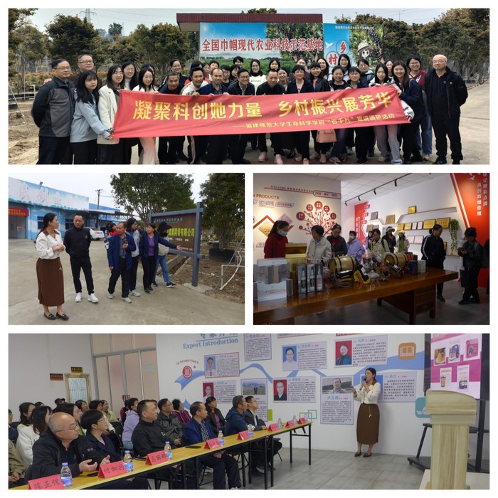 3月18日,生命科学学院组织教职工赴莆田仙游开展“凝聚科创她力量,乡村振兴展芳华”主题调研,开展访企拓岗促就业专项行动,探望在当地企业实习的学生。学院党委书记张兆文、工会主席张秋金,仙游县妇联主席马丽娜、台办主任林怀金、国家级台湾农民创业园副主任付加兴,榜头镇副镇长郑忠武,福建莆田台创农业综合开发有限公司董事长陈正信等,学院教职工和科技特派员30人参加了座谈交流。