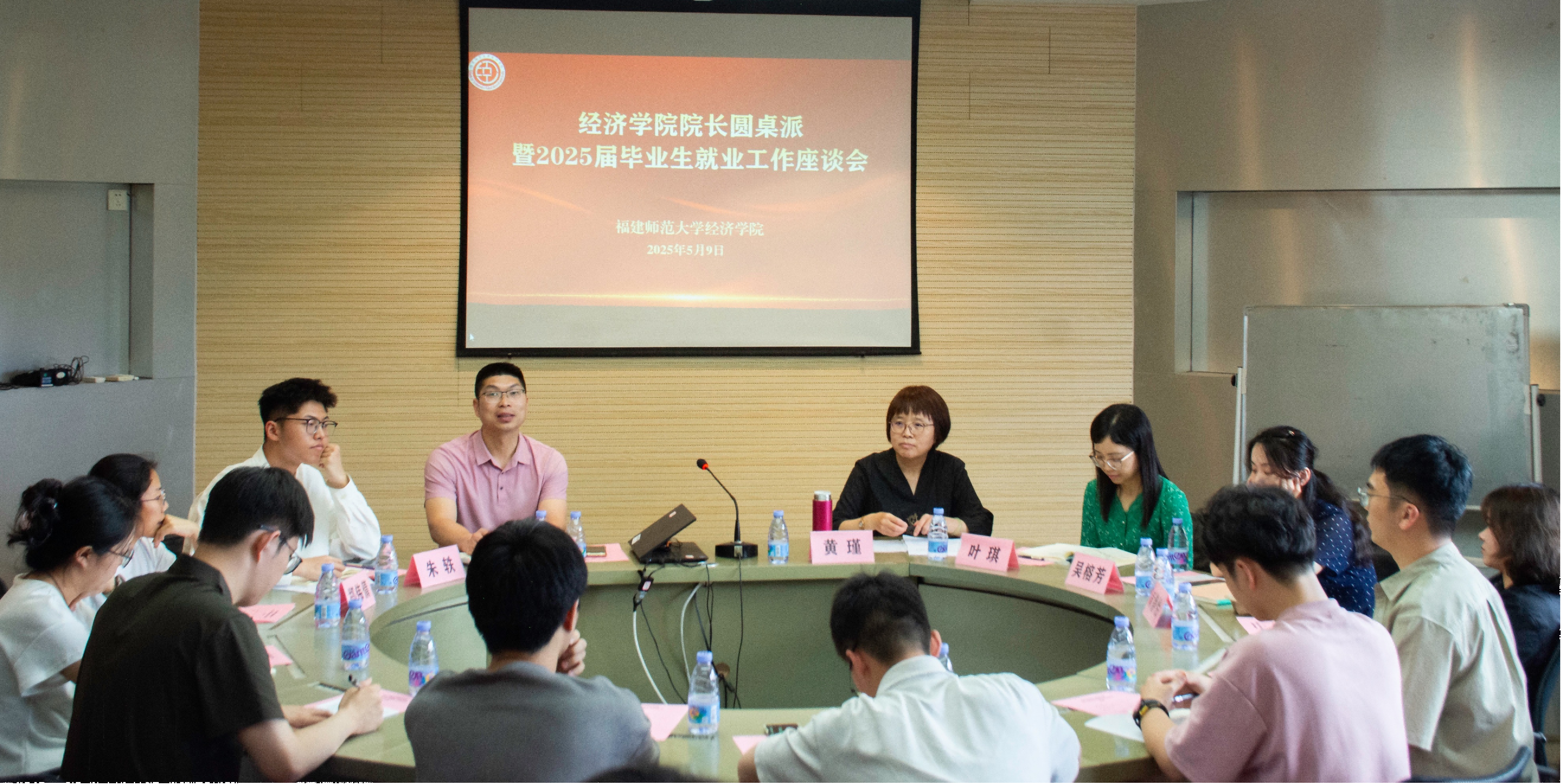 5月9日,经济学院在人文楼三号楼圆桌会议室举办院长圆桌派暨2025届毕业生就业工作座谈会。院长黄瑾、党委副书记叶龙祥、院务委员叶琪及毕业生代表参加。