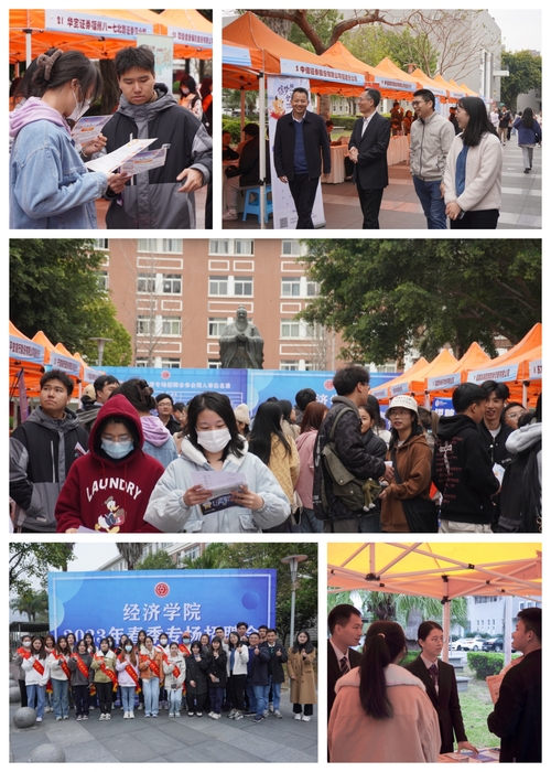 近日,经济学院在旗山校区人文楼广场举办2023年经济学科类专场招聘会。校学生工作部部长陈晓斌、经济学院党委书记颜隆忠、副书记叶龙祥、全体辅导员及2023届本硕博毕业生参加了现场招聘会。