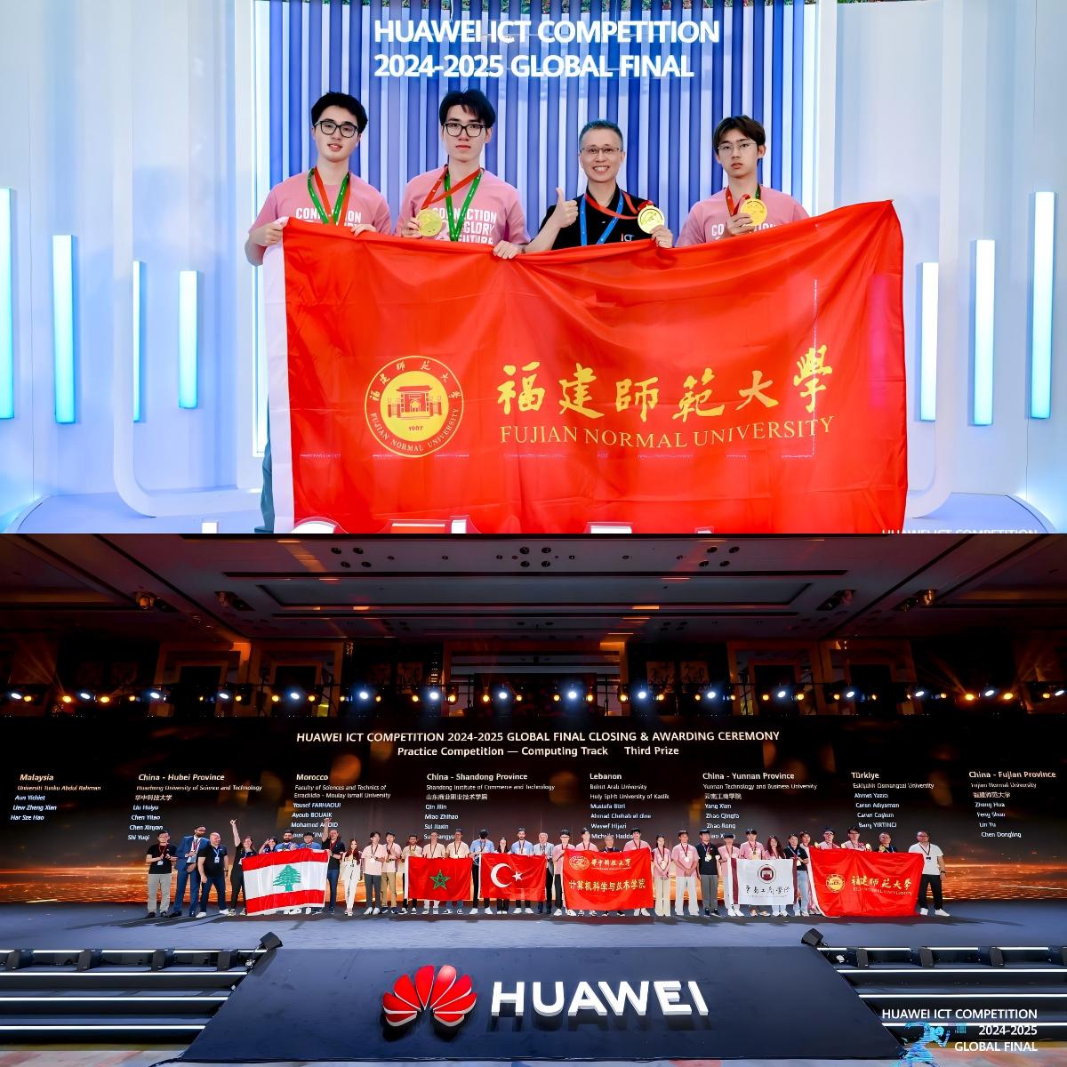 524日,华为ICT大赛2024-2025全球总决赛闭幕式暨颁奖典礼在深圳举行。光电与信息工程学院学生冯硕、计算机与网络空间安全学院学生林宇、陈东灵组成的团队,在郑华老师的指导下,以中国区总决赛一等奖的成绩进入全球总决赛,并获得基础软件赛道三等奖。