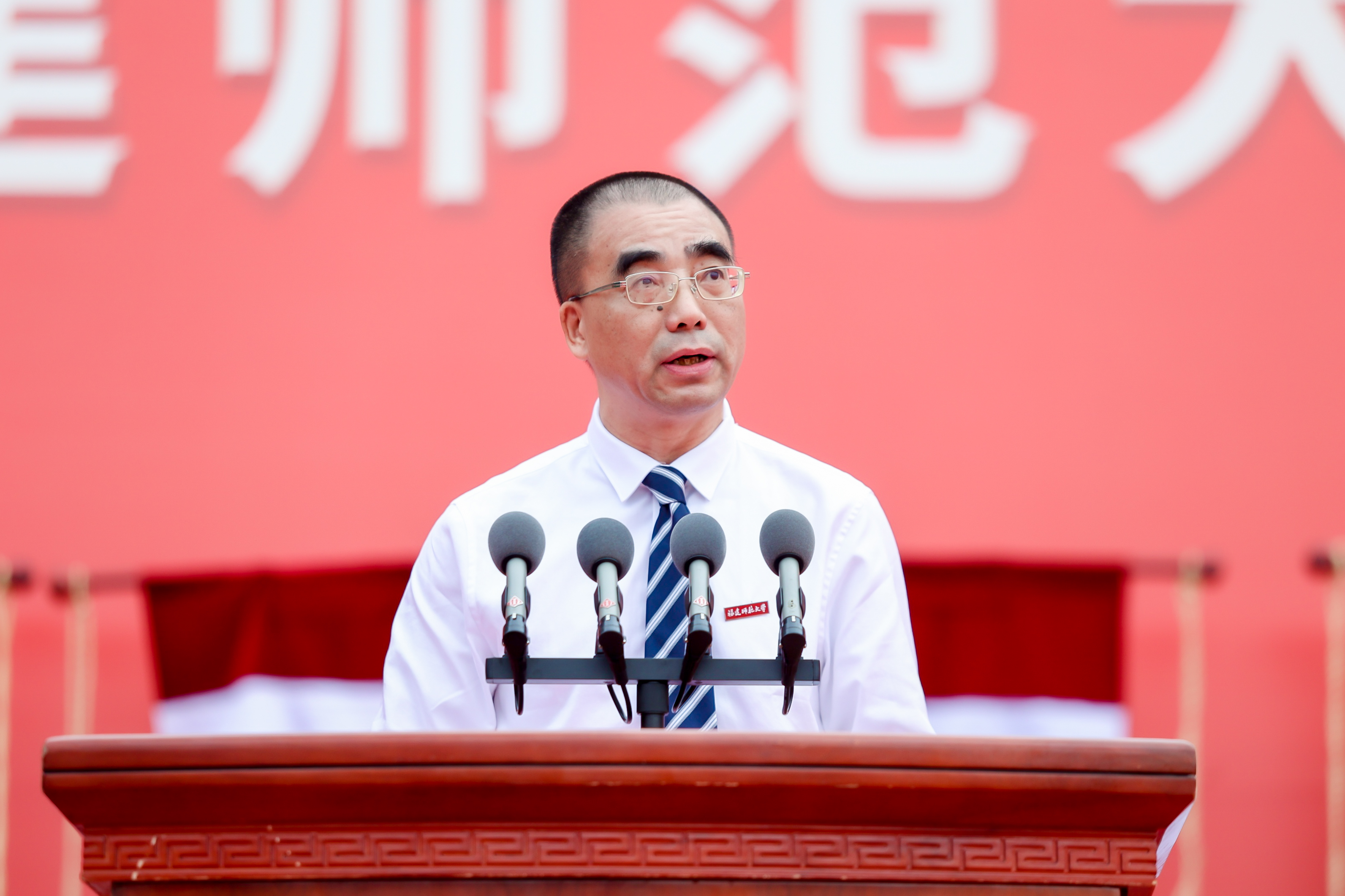 毕业典礼在热烈昂扬的《翱翔于天》歌舞表演中拉开序幕。校长郑家建围绕父辈、师者、学长、校长等多重身份,为毕业生送上了一份充满诗意与哲思的临别嘱托。他以父辈之心深情叮嘱毕业生,未来生活或一路欢歌,或风雨兼程,但无论顺境逆境,都要坚韧前行;以师长之爱谆谆教导毕业生,大学时光的诸多场景,从初入校园的激动,到课堂学习、考试拼搏,最终都会成为珍贵回忆,希望大家铭记师生情谊,珍惜美好青春时光;以学长之情温暖寄语毕业生,坦然面对得失,在未来前行的漫漫长路上,将始终与毕业生同行相伴、携手互助、共同成长;以校长之责郑重嘱托毕业生,始终保持脚踏实地的人生本色,坚信耕耘终会迎来收获,在纷繁世事中保持初心的坚定和内心的纯粹。他希望毕业生在“知明行笃、立诚致广”的校训中诠释人生之内涵,带着母校的祝福在新的生命航程中奋发搏击。
