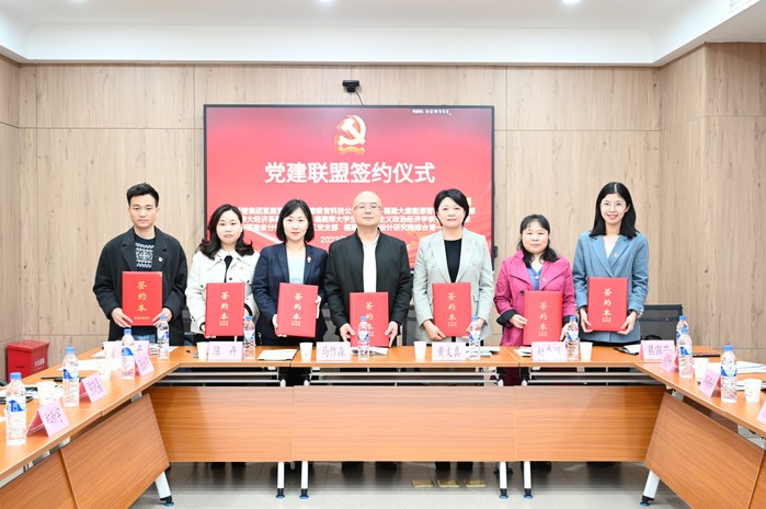 活动中,经济学院师生党支部与福建中旅饭店管理集团直属党支部、福建大唐能源营销公司党支部、建行福建省分行营业部第三党支部、福建省建筑设计研究院有限公司综合第一党支部、福建福旅教育科技有限公司党支部签署了党建联盟协议书。根据协议,各联盟单位将通过打造党建联盟平台,深化“链上”党建工作模式,打破行业壁垒,开展多元融创,深化校银政企务实合作,实现共赢发展。