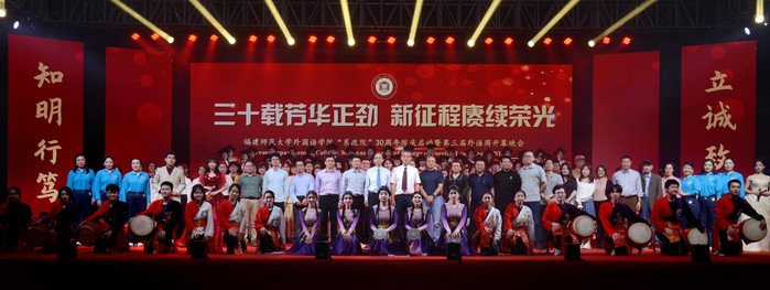 近日,外国语学院在仓山校区综合体育馆举行“系改院”30周年院庆启动仪式。学院党政领导、校友代表、师生代表参加了仪式。